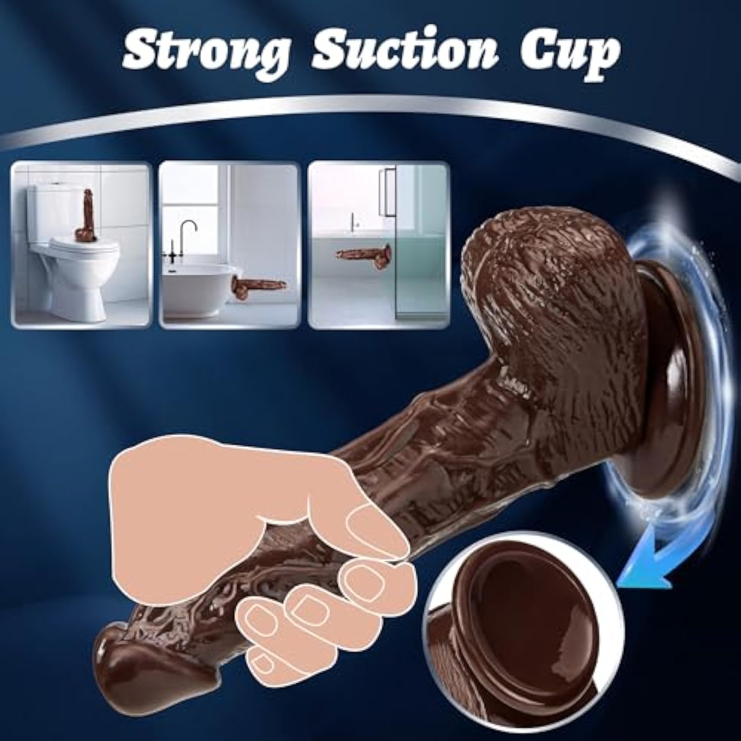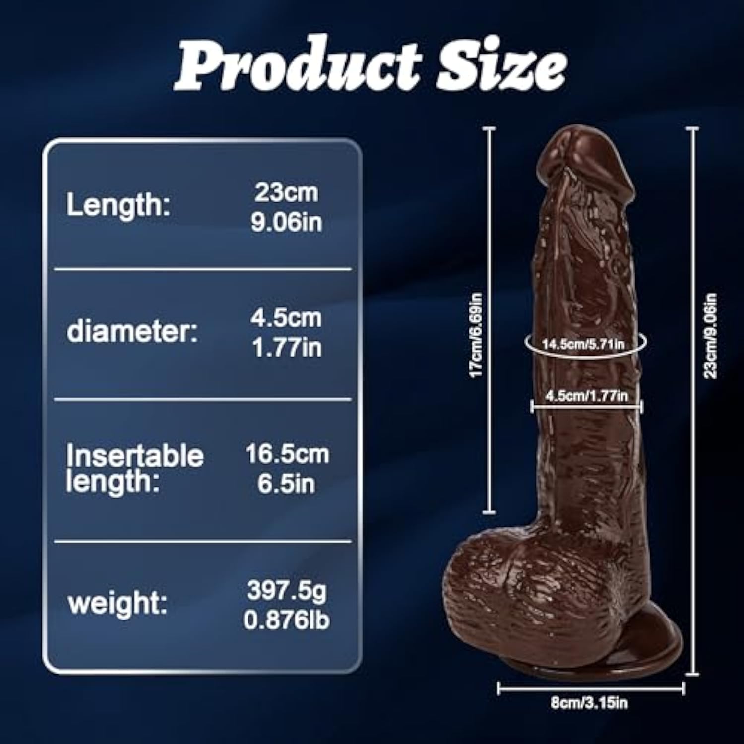 9 Inch Realistic Huge Thick Dildo With Strong Flared Suction Cup Base For Hands-Free Play, G-Spot Big Realistic Dildo Sex Toys For Women And Men(Brown)