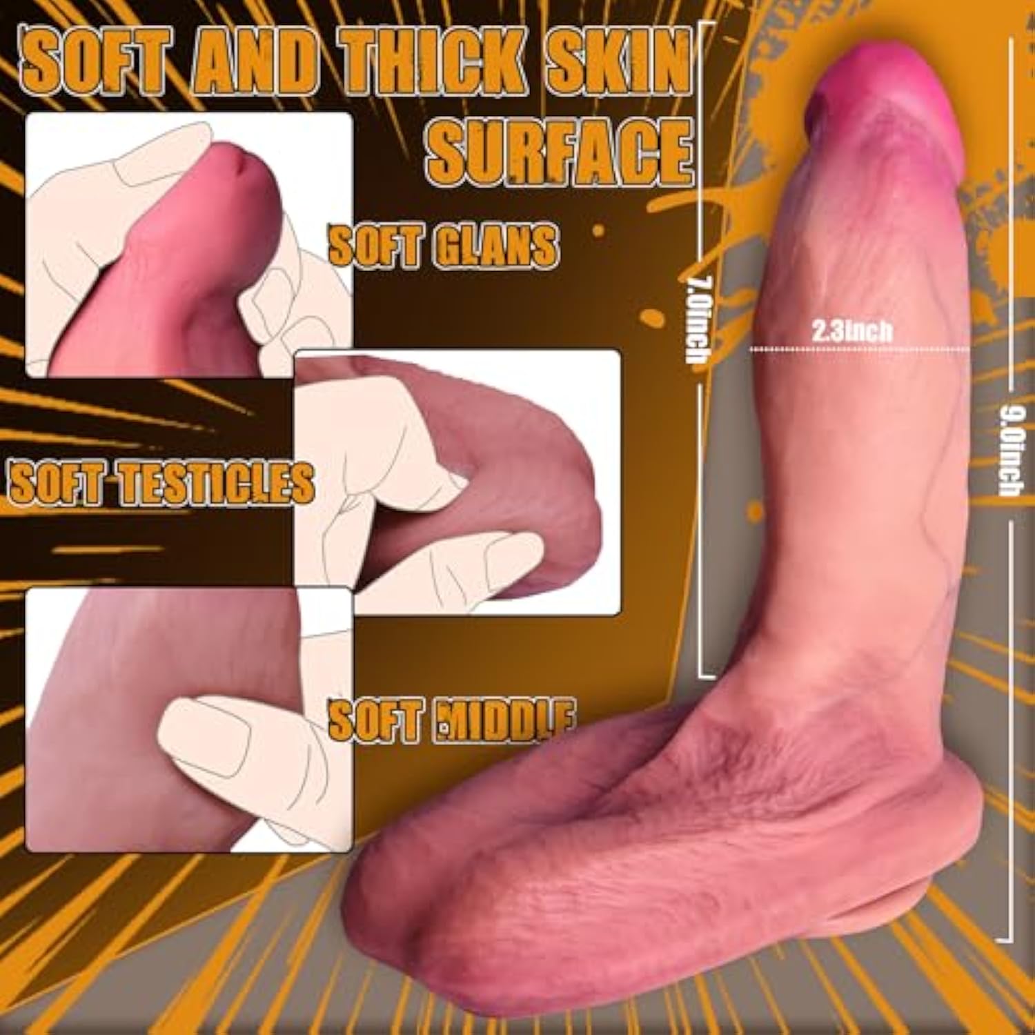 9 Inch Realistic Thick Big Dildo,Real Skin Feels Silicone Huge Dildos With Strong Suction Cup,G-Spot Dildo Anal Sex Toys For Women And Men,100% Food Silicone Materials Lifelike Penis
