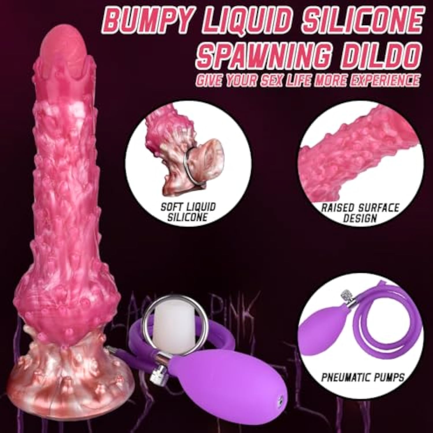 9 Inch Silicone Ovipositor Dildo Adult Sex Toys,Fantasy Knot Dildo Purple Inflatable Pump
