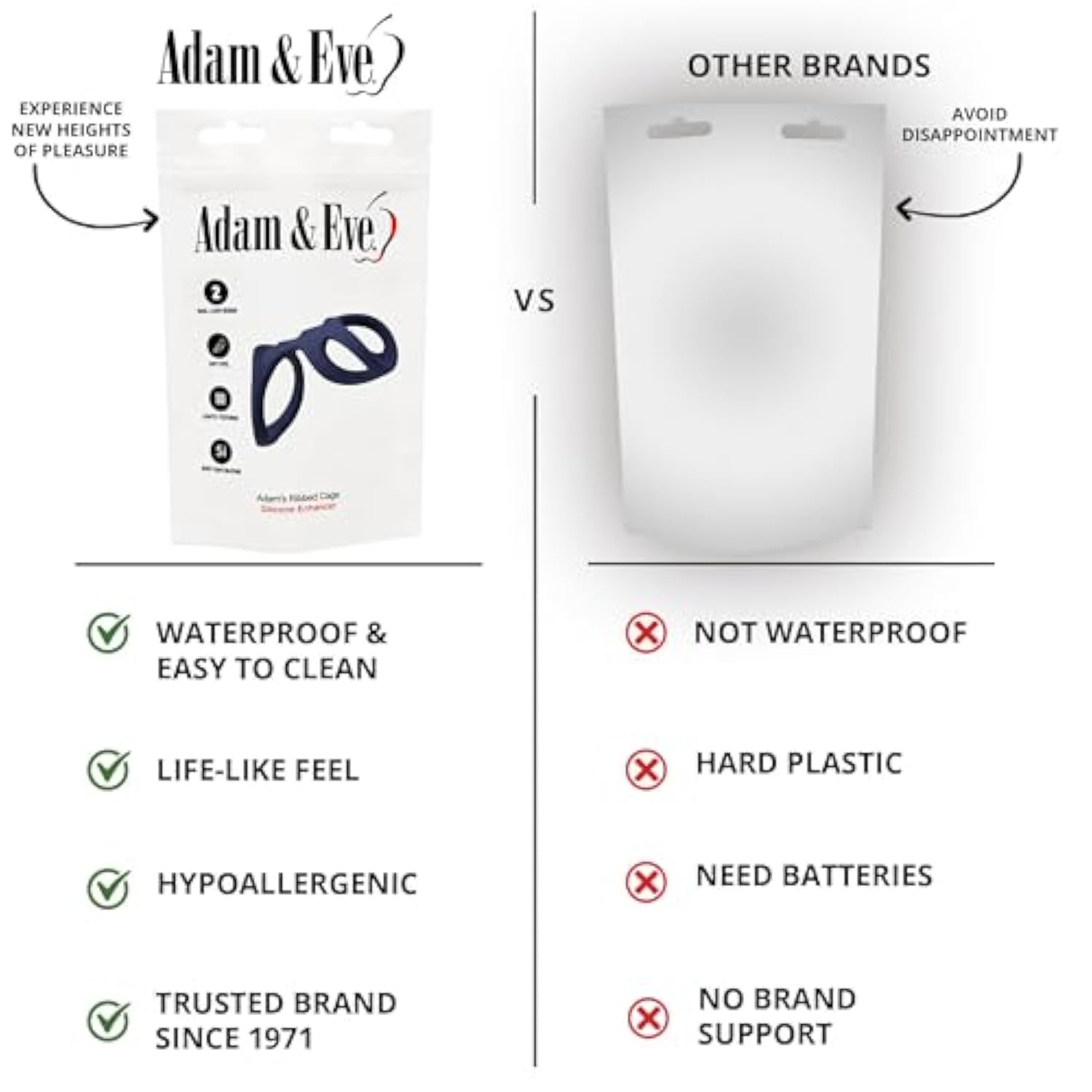 | Stimulating Ribs For Intense Pleasure: Adam’S Ribbed Cage Features Thrilling Ribbed Textures That Massage Your Partner’S Inner And Outer Sweet Spots With Every Thrust. Designed For Unforgettable Sensations, It Amplifies Shared Pleasure Like Never Before. | | Dual-Loop Design For Enhanced Performance: The Bottom Loop Snugly Wraps Around Your Shaft And Balls To Enhance Firmness And Boost Size, While The Top Loop Squeezes Your Upper Shaft To Delay Climax And Maximize Endurance For Longer-Lasting Fun In Bed. | | Premium Body-Safe Silicone Material: Crafted From Hypoallergenic Silicone, This Enhancer Offers A Soft, Stretchable Fit That Feels Amazing. The Durable Material Ensures Safety, Comfort, And Long-Lasting Performance For Countless Intimate Experiences. | | Ideal For Couples’ Bedroom Play: Measuring 4.5 X 2 Inches With Stretchable Loops From 1 To 1.5 Inches, It’S Perfect For Partners Seeking To Elevate Their Intimate Moments. Use With Water-Based Lube And Enjoy Effortless Cleaning And Maintenance. | | Trusted Usa Brand Since 1971: Adam Eve Is Committed To Providing High-Quality Products And Exceptional