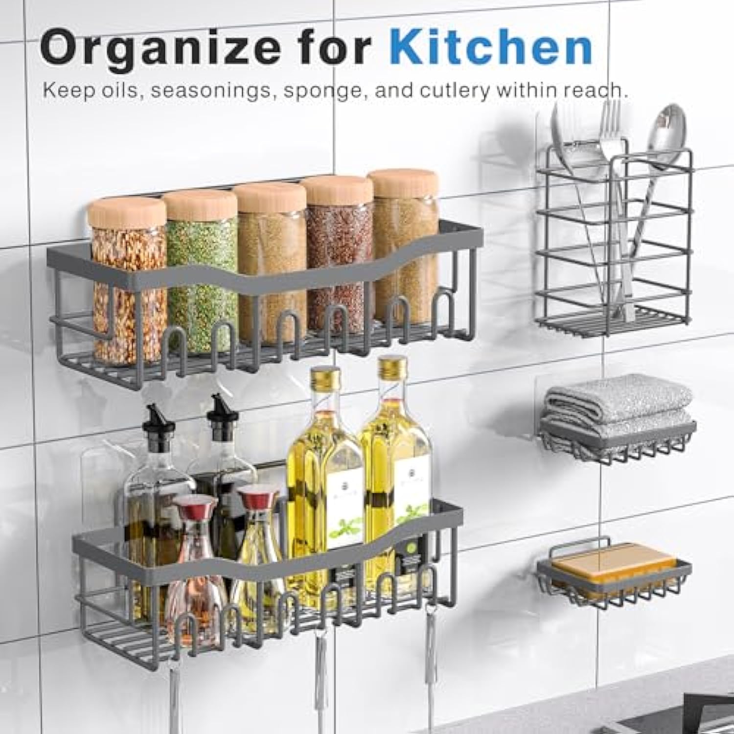 - 5 Hanging Shower Organizer Set for Sufficient Bathroom Storage Space: The bathroom organizer comes with 5 pieces for different uses, including 2 shower caddies, 2 soap holders,1 toothbrush holder and 5 adhesives. Accommodate wash supplies or cooking seasonings easily with large capacities to make full use of space and facilitate your life; ideal for the dorm/bathroom/kitchen/toilet/tool room.