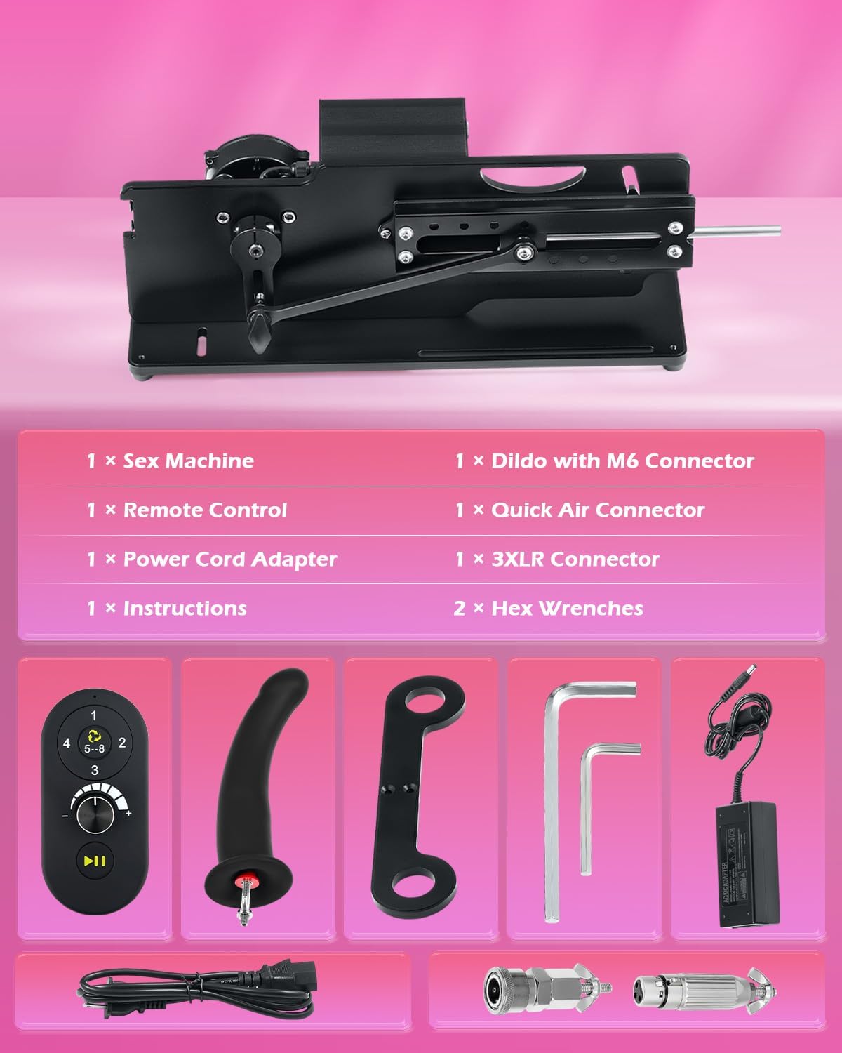 Switch between the included M6 dildo and other options with the provided adapters, which are compatible with quick air or 3XLR ports. An extension rod (4") is also included for added versatility, giving you more control over your experience.