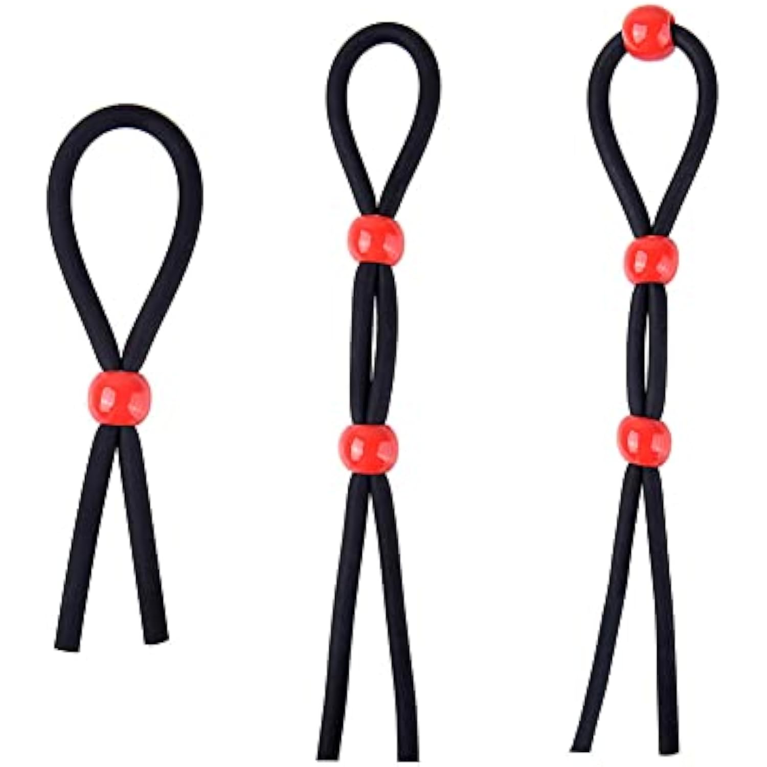 Adjustable Cock Ring Set Love Rings Basic Penis Ring Sex Toys, Silicone Male Cock Ties Black String With Red Beads, Designed For Harder Erection, 3 Pcs