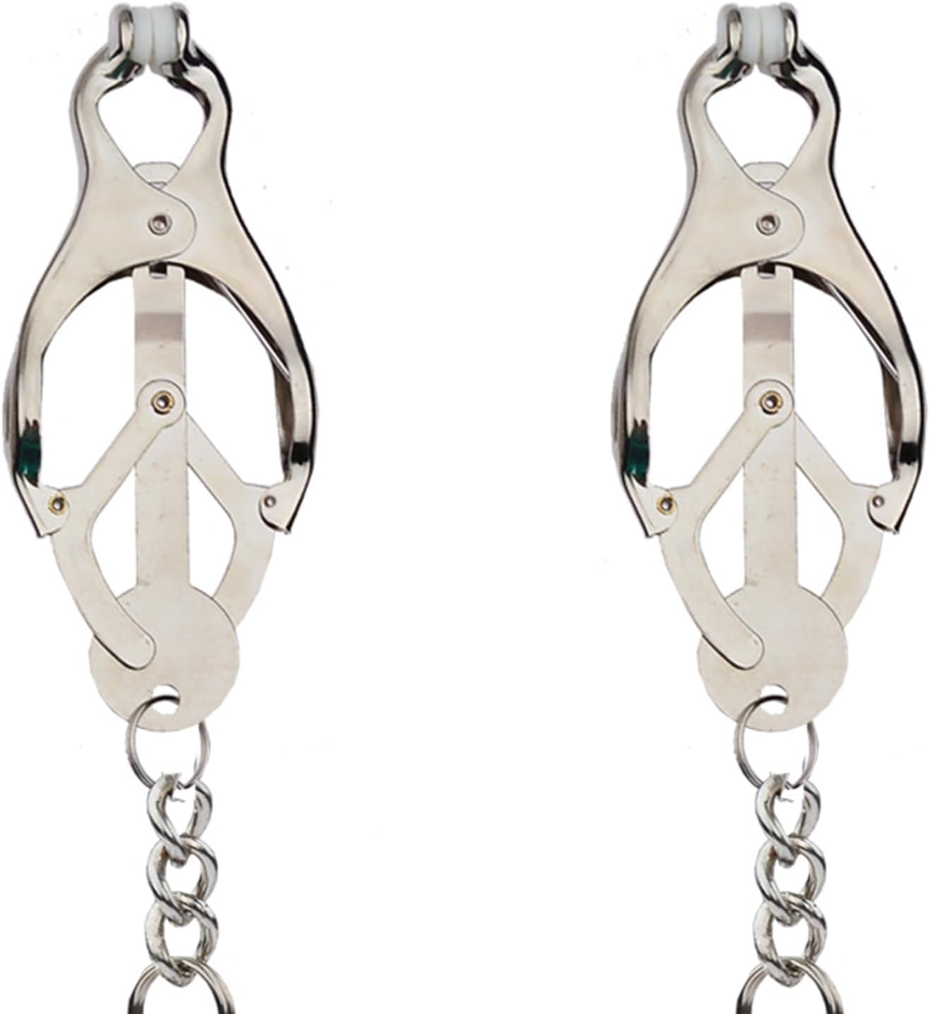 Adjustable Large Metal Nipple Clips with Chains, Non-Piercing Nipple Clamps (2)