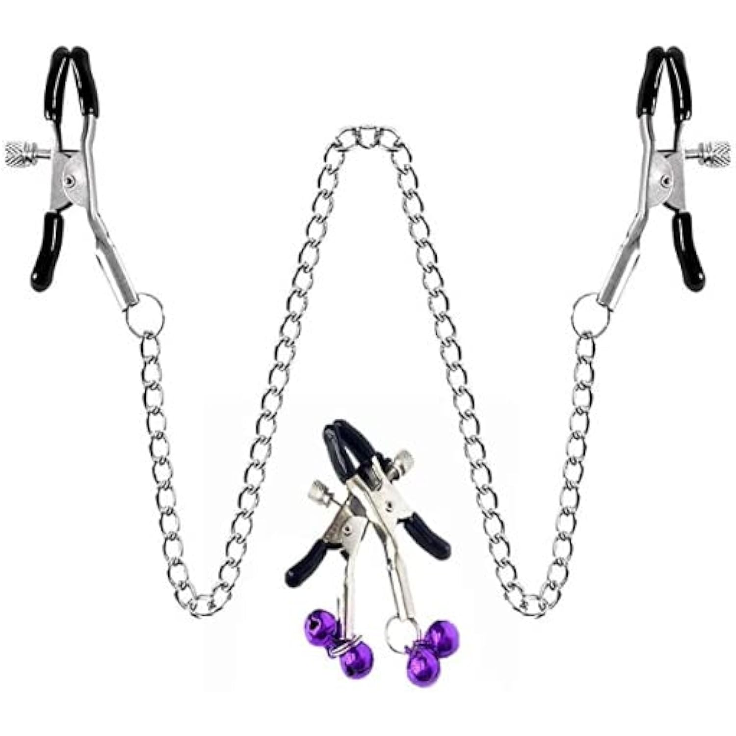 Adjustable Metal Nipple Clamps Entertainment Clip For Women Rj666 Non-Piercing Nipplerings Clip On Nipple Rings Decorative Clip For Clothing Accessories (Black/Hr44)