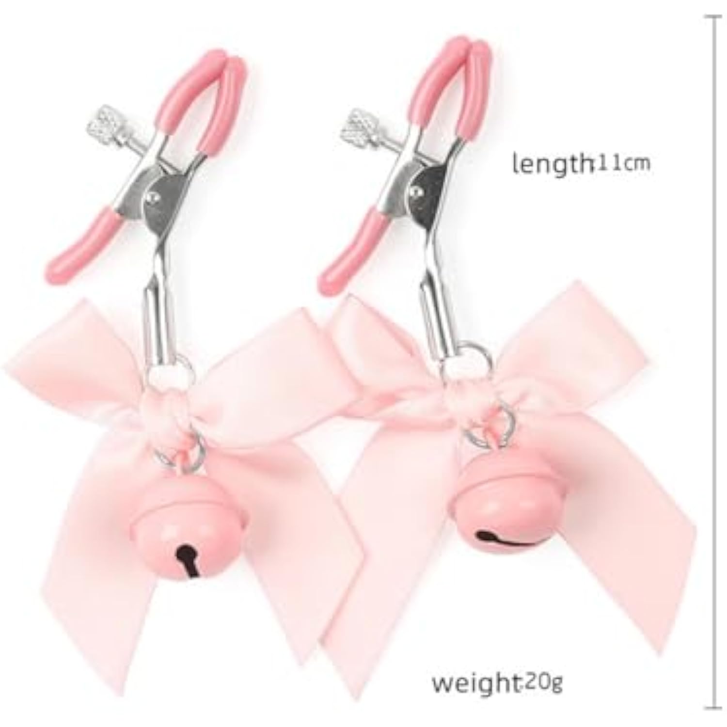 Adjustable Metal Nipple Clamps Non-Piercing Pink Bow Nipple Rings Decorative Weights Bell Non Piercing Nipple Adult Flirting Sex Toy