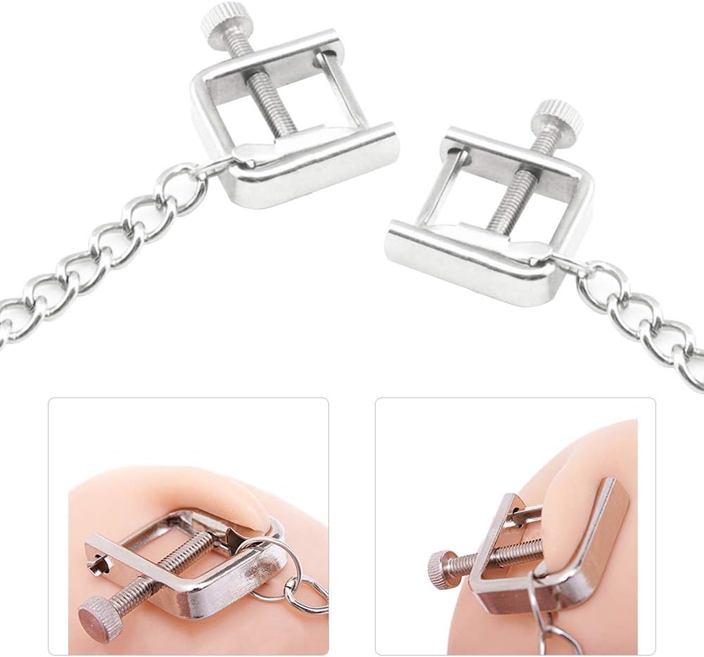 Customizable Pressure for Personalized Sensation: Adjust the clamp pressure with a simple screw mechanism to suit your comfort level. The attached chain adds subtle stimulation with every movement, making it ideal for intimate sensory exploration and playful foreplay.
