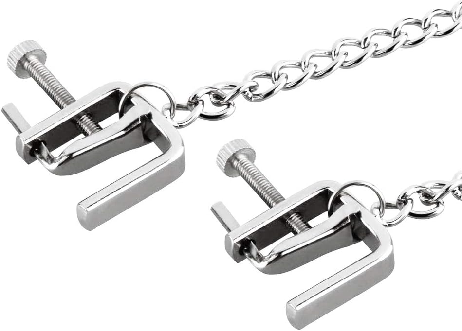Adjustable Metal Nipple Clamps with Chain – Flat-Head Clips for Sensory Play
