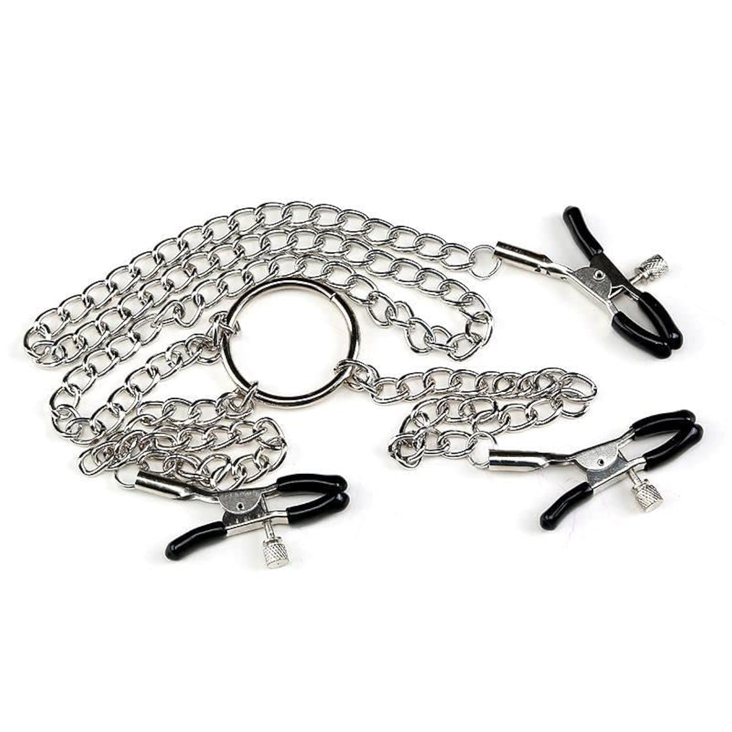 Adjustable Nipple And Clit Clamps With 3-Chain Ring Connector – Bdsm Alligator Style Barrel Bolt Clamps For Fetish Bondage Play – Stainless Steel Tri-Chain Restraint For Hardcore Sensation Play