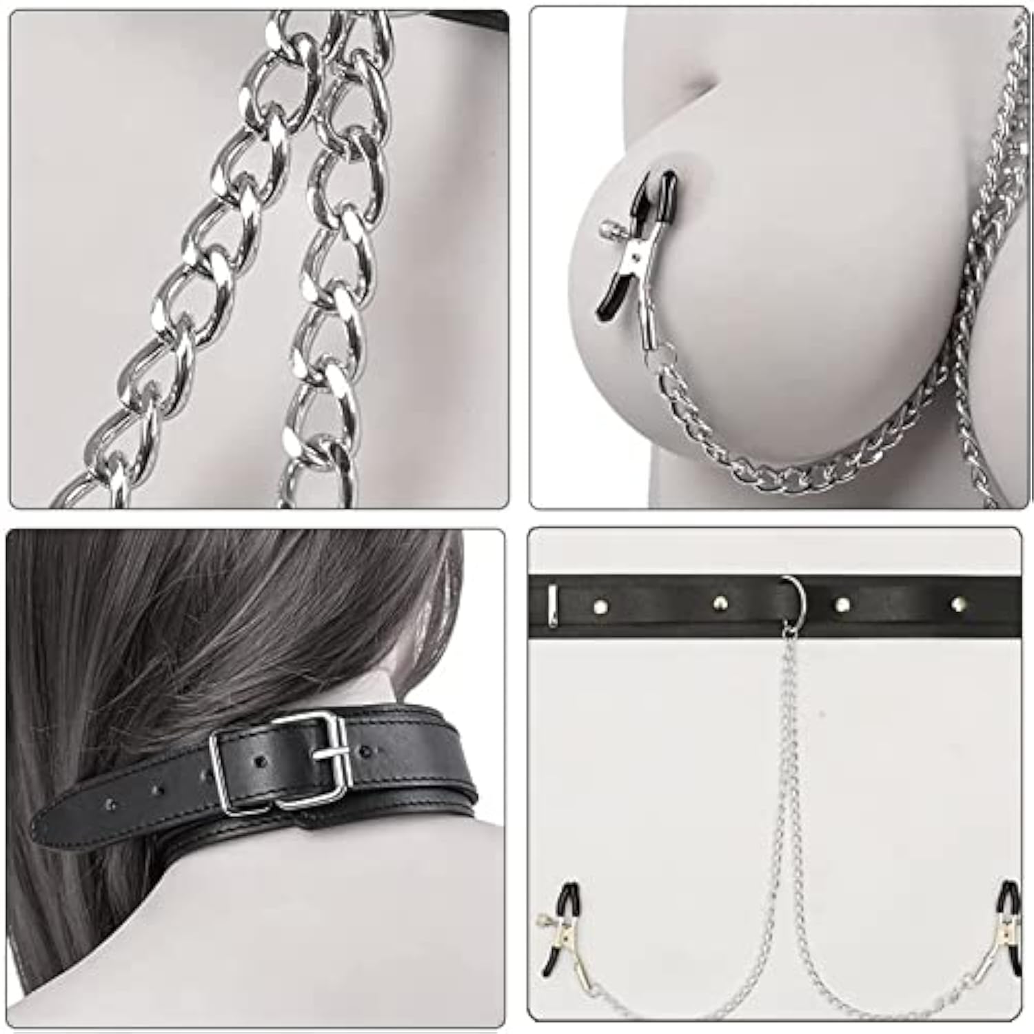 | ? High Quality Material: The Nipple Clamps Are Made Of High Quality Zinc Alloy, Non-Toxic, Odorless, Rustproof And Waterproof. The Collar Is Made Of High Quality Pu Leather, Will Not Cause Skin Allergies, Easy To Clean And Store. | | ? Adjustable Collar: With Buckles Is Odourless And Safe, Very Comfortable To Wear. The Tightness Of The Collar Can Be Personal Preferences, Increase The Fun Of Sex. All Chains And Clamps Can Also Be Used Independently. | | ? Ideal Sex Gift: This Sex Toy Can Satisfy Your Sexual Desire. Whether In The Living Room, Bedroom, Kitchen, Bathroom, Hotel And Other Places. It Is Small And Very Easy To Store, It Is An Excellent Must-Have For Your Travel. It Is Small And Very Easy To Store, It Is An Excellent Must-Have For Your Travel Holiday. It Is A Wonderful Gift For Birthday, Valentine'S Day, Christmas, Honeymoon. It Is Very Suitable For Gifting To Sexual Partners And Close Friends. | | ?Provide More Passion: The Design Of Metal Chain With Nipple Clamps Will Bring More Stimulation And Fun To Women'S Nipples, The Cool Metal Touches The Hot Body, The Clamps Firmly Bite The Nipple, Adding More Wonderful Flavor To Your Sex Life. | | After-Sales Service :If You Have Any Dissatisfaction With Our Products, Please