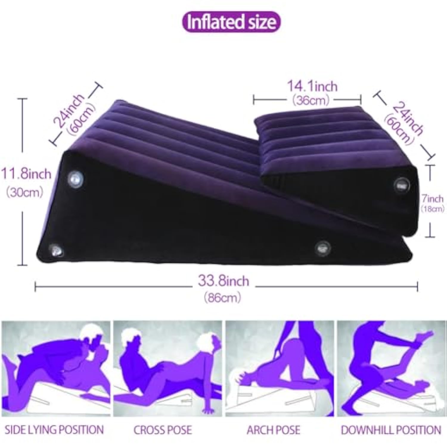 | Improve Couples Sexual Experience: Incline Positioning Sofa Pillows Can Help Couples Achieve More Interesting And Exciting Sex Positions From A Variety Of Angles. Two Pillows Of Different Sizes Can Be Used In Combination Or Alone, Allowing For More Changes In Sexual Positions, Lifting The Buttocks To The Most Appropriate Position, Feeling The Deepest Penetration And A More Exciting Sexual Experience, Allowing Each Other To Fit Together For One | | Enhance Sexual Stimulation: A Blindfold And A Pair Of Handcuffs Are Given As A Gift. The Blindfold Can Cover The Partner'S Eyes, Immersing The Partner In Complete Darkness, Enhancing Senses And Excitement. The Handcuffs Are Connected To The Hook Next To The Sofa, Allowing You To Experience Bdsm Bondage. Restraints Your Partner'S Wrists And Ankles To The Sofa Pillow, And Be Controlled By You Like A Prey, Making Sex More Interesting And Exciting For You | | The Best Sex Aid: The Internal Design Uses Multiple Independent Air Bags To Make The Overall Structure More Flexible And Stable And Evenly Distribute The Weight. Provides Vertebrae And Back Support During Your Wild Sex, Supports Your Body At Nearly Every Angle, And Remains Stable And Strong Through Hard Impacts. With The High Elasticity Of The Pillow, You And Your Lover Can Use It More Easily, Save Energy And Relieve Fatigue.Whether It'S Oral, Vaginal Or Anal Sex, A Sex Pillow Can Provide The Best Help | | Ergonomic Design: The Sex Sofa Pillow Adopts A Large And Small Triangular Combined Design, Which Can Provide A Perfect Force Angle When Used, So That The Weight Of The Body Is Evenly Distributed On The Sofa Pillow, Maximizing Fun And Freely Unlocking Different Sex Positions. Allowing You To Have A Very Good Sense Of Comfort Even During Strenuous Sexual Activities. Multifunctional Use Can Also Be Used As A Knee Pad, Bed Pillow, Nap Pillow, Seat Cushion, Etc. For Daily Use | | Selected Materials And High-Quality Workmanship: The Surface Of The Fun Sofa Pillow Is Implanted With A Layer Of Fine Fluff, Which Is Soft And Skin-Friendly. It Can Play The Role Of Cushioning And Shock Absorption During Use, Can Absorb Sweat And Prevent Slipping,, Allowing You And Your Lover To Enjoy More Fun Without Worries. The Overall Weight Capacity Of The Sex Pillow Is Very Good, With A Maximum Capacity Of Around 450 Pounds; Also Suitable As An Auxiliary Tool For Massage Or Yoga | | Sex Toys That Fit Her Or Him: It Does Not Take Up Space After Being Folded And Stored. Suitable For Living Room, Bedroom, Balcony, Garden, Outdoor Patio, Camping, Traveling, Beach, Hiking And Other Places. It Is Also Very Convenient To Carry And Use When Going Out. Best Sex Toys; It Comes With A Small Electric Air Pump And Can Be Used At Any Time. Can Be Used As A Holiday Gift For Wedding Anniversary, Valentine'S Day?Christmas, Easter, Give Your Relatives And Friends, Wife Or Husband/Boyfriend Or Girlfriend A Surprise | |
