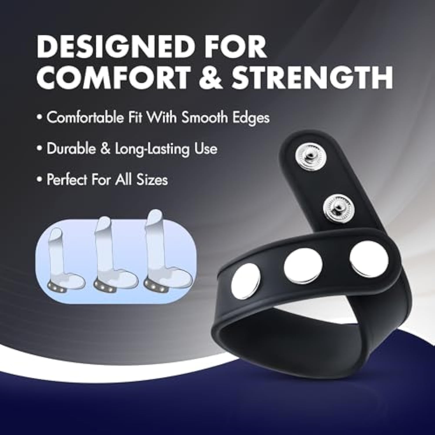 Material And Size: Crafted From Platinum-Cured Puria Silicone, This Adjustable Penis Ring Strap Ensures A Soft Yet Durable Feel. The Nickel-Free Stainless Steel Hardware Features Smooth Edges, Providing A Comfortable, Seamless Fit For Enhanced Pleasure. With A Length Of 9 Inches And Height Of 0.875 Inches, This Male Penis Ring Is Easy To Use, Providing A Secure Fit Without Discomfort. | | Unique And Premium Quality: This High-Quality Cockring Is Built For Long-Lasting Performance, Featuring Quick-Release Snaps For A Secure Yet Customizable Fit. The Premium Black Silicone Strap Not Only Enhances The Look Of Your Penis, But Also Delivers Stronger, Firmer Erections, Improving Both Stamina And Performance. | | Usability And Safety: Designed With Sexual Wellness In Mind, This Male Sex Toy Is Body-Safe, Hypoallergenic, And Free From Phthalates. Lab-Tested And Certified To Meet Prop65 Reach Standards, Ensuring Peace Of Mind While Using This Cock And Ball Ring For Intimate Pleasure. | | Performance And Functionality: Engineered For Maximum Pleasure And Support, This Adjustable Cock Ring Helps To Increase Blood Flow, Resulting In Longer-Lasting Erections And Heightened Sensitivity. Perfect For Solo Use Or Couples Play, This Sex Toy For Men Intensifies Sensations And Enhances Overall Experience. | | Experience And Packaging: Universal Fit, Designed To Accommodate Various Sizes. Cleaning Is Quick And Effortless - Simply Wash With Warm Water And Mild Soap. Whether For First-Time Users Or Experienced Couples, This Silicone Cock Ring Is A Must-Have Addition To Your Collection. | |