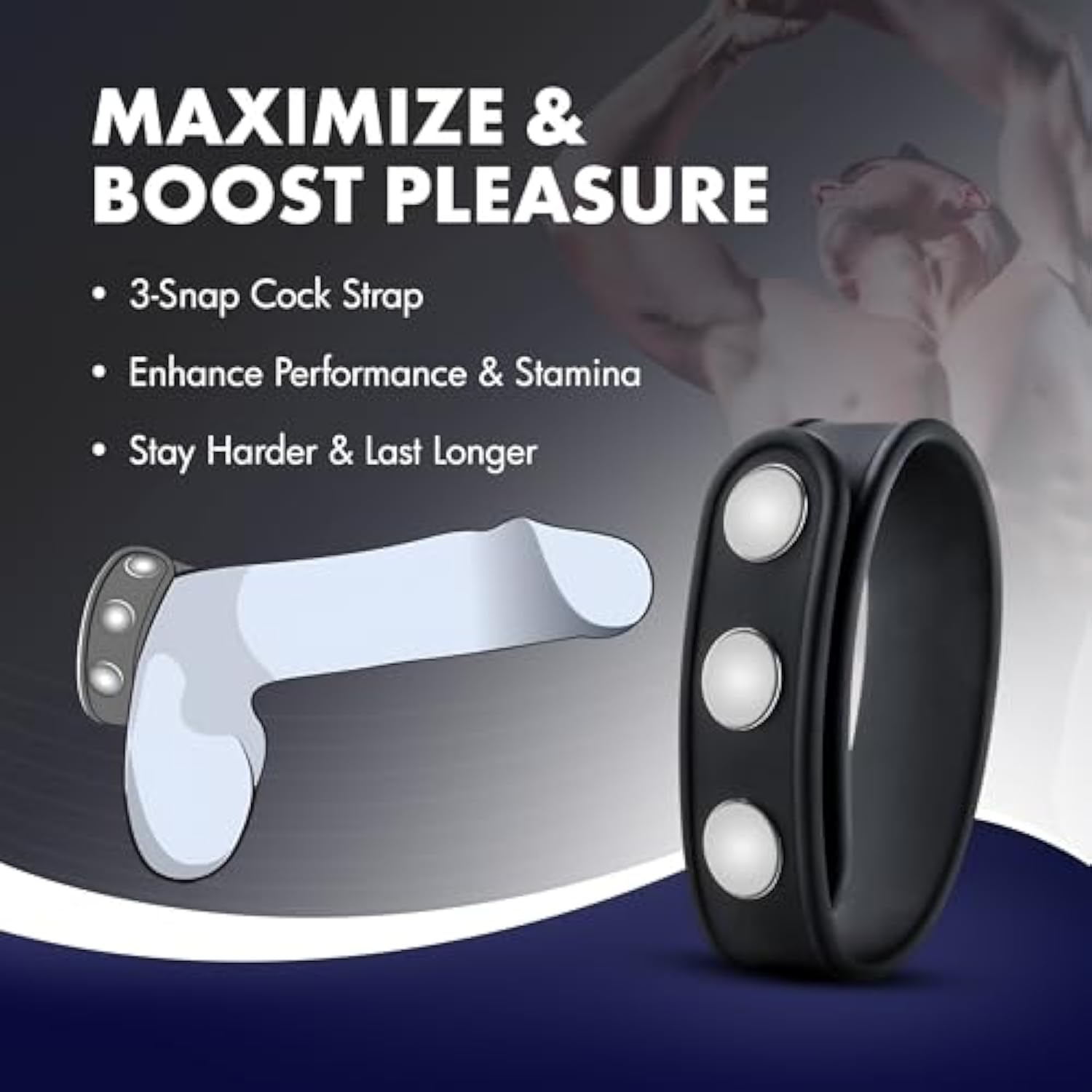 Adult Sex Toys – Performance 3-Snaps Cock Strap – Platinum-Cured Puria Silicone Adjustable Cock Ring Strap –Nickel-Free Stainless Steel – Male Penis Enhancer For Men & Couples – Black