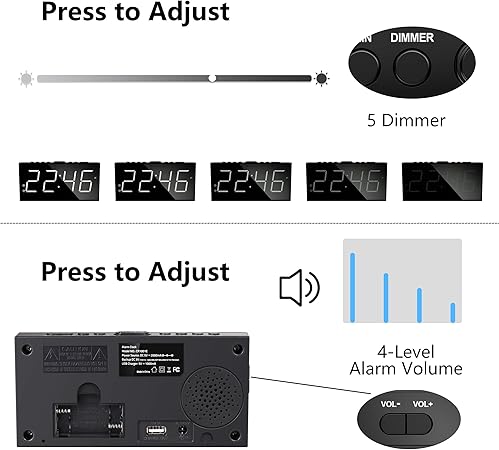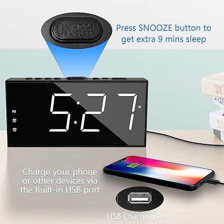 - โฐ NO WORRY BATTERY BACKUP SETTINGS WITH SNOOZE: This ๐ฝ๐น๐๐ด ๐ถ๐ป ๐ฎ๐น๐ฎ๐ฟ๐บ ๐ฐ๐น๐ผ๐ฐ๐ธ๐ ๐ณ๐ผ๐ฟ ๐ฏ๐ฒ๐ฑ๐ฟ๐ผ๐ผ๐บ is outlet operated for ALL functions working, such as USB charging, alarm and time display. ๐๐๐ฎ๐น ๐ฎ๐น๐ฎ๐ฟ๐บ ๐ฐ๐น๐ผ๐ฐ๐ธ ๐๐ถ๐๐ต ๐ฏ๐ฎ๐๐๐ฒ๐ฟ๐ ๐ฏ๐ฎ๐ฐ๐ธ๐๐ฝ time and alarm settings as well as trigger the alarm when power failure. Simply press the โSNOOZEโ button on the top to get extra 9 min sleep before it alerts again.