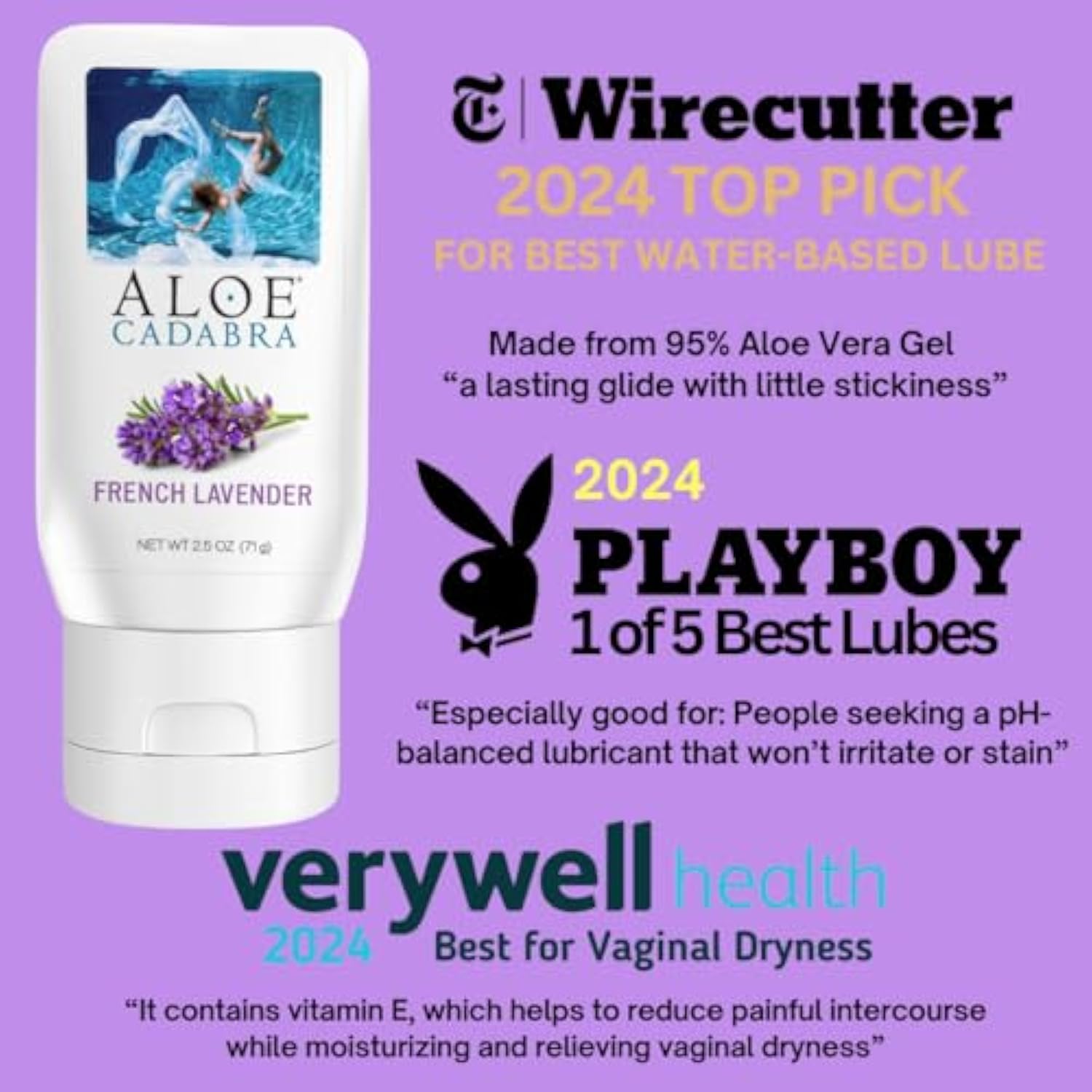 Aloe Cadabra Vaginal Moisturizer, Organic Edible Aloe Lube for Men, Women, Non-Staining, pH Balanced, (French Lavender, 2.5 Ounces, 1 Pack)
