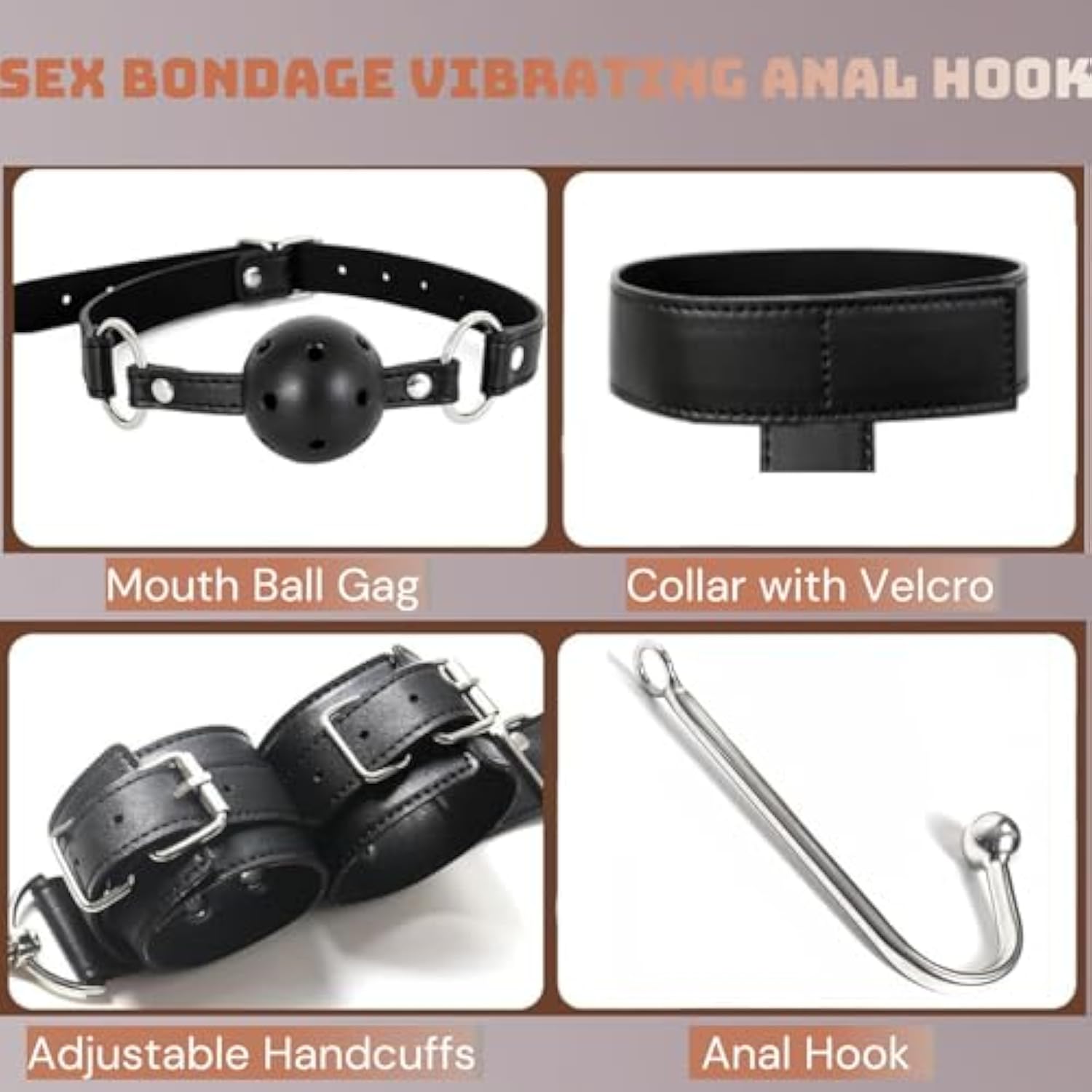 - Slave Love Sex Bondage Set -These Sm Collar With Cuffs Combo Neck To Wrist Restraints Kit, Anal Hook And Mouth Ball Gag. Restrict Your Plaything'S Mobility In A Unique And Attractive Bondage Device That Will Make Them Look And Feel Irresistibly Helpless