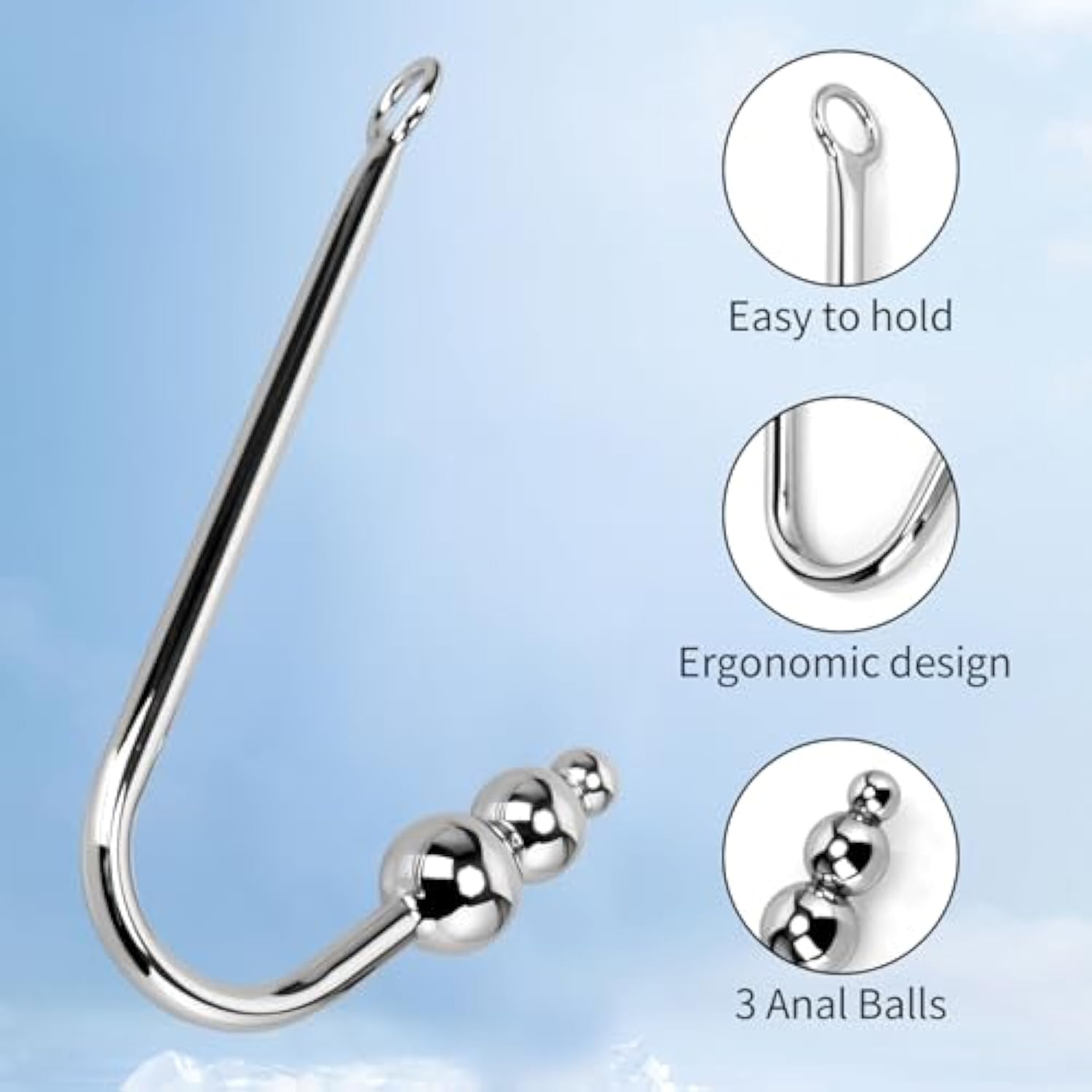 | Made Of Stainless Steel, The Anal Hook Is Completely Smooth With No Cracks Or Sharp Points, Non-Toxic, Body Safe And Comfortable To Use. | | The O Ring At The End Of The Anal Hook Can Be Used To Connect To Ropes, Chains Or Other Bondage Bdsm Equipment, Make Your Bed Into A Bondage Place. | | This Bondage Fetish Toy Has 3 Balls At The End ,Which Will Give You More Sexual Stimulation. Diameter Of The Ball: 0.75 Inch - 1.38 Inch. Comfortable Using And Leave Boundless Imagination For Players To Experience Sexual Games. | | The Curved Curvature Makes It Easily To Be Inserted Into The Anus. You Can Give Your Lover Extra Stimulation While Taking Shower Since It Is Waterproof. It Is Non Porous, So It Can Be Cleaned And Sterilized By Any Way. | | Discreet Package. All Of Our Products Will Be Neatly Packaged In A Discreet Package To Protect Your Privacy. Please Feel Free To