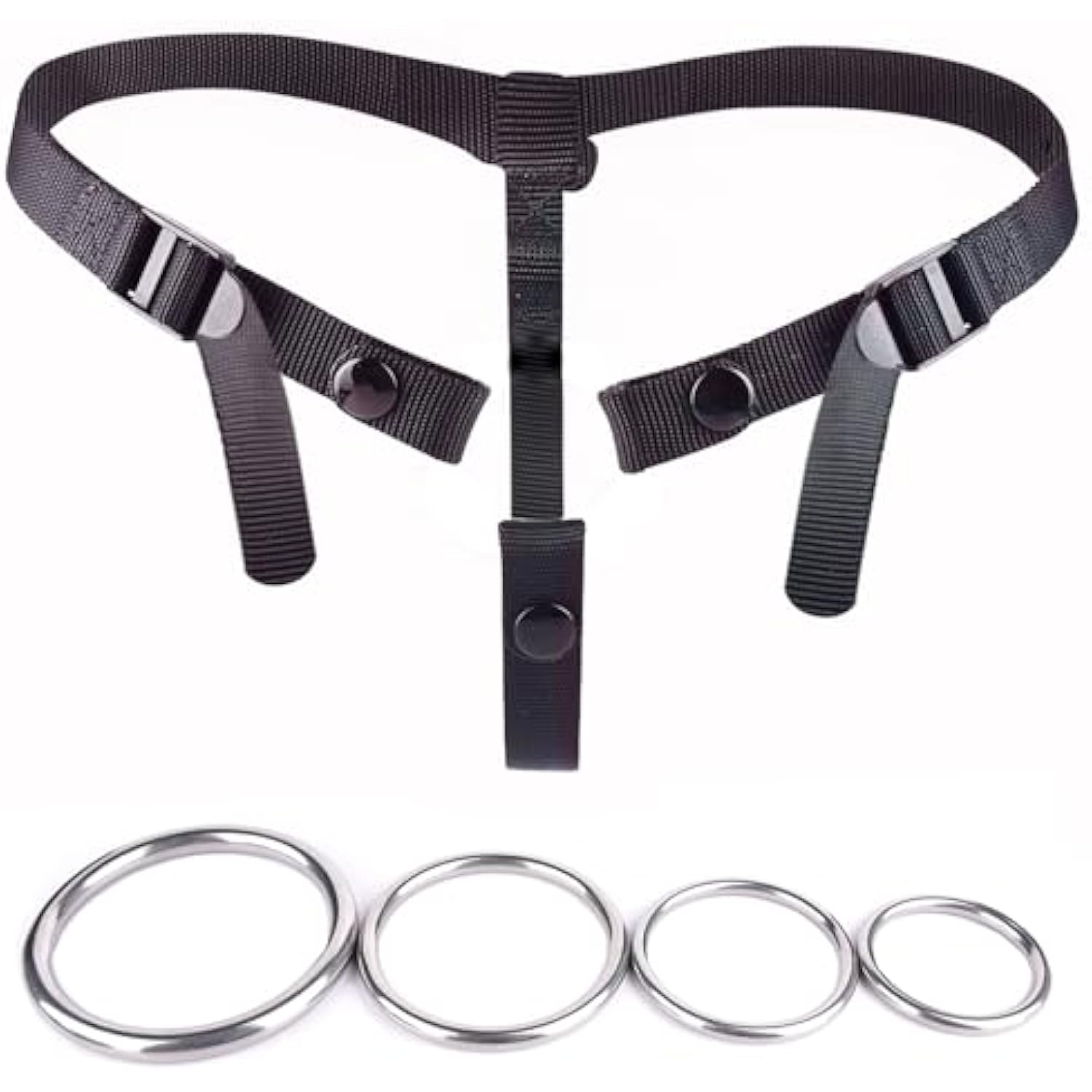 Anti-Off Male Chastity Cage Devices Elastic Band Penis Cage Accessories, Adjustable Auxiliary Belt With 4 Size Cock Rings Sex Toy Underwear For Men (Adjustable Belt With 4 Size Ring)