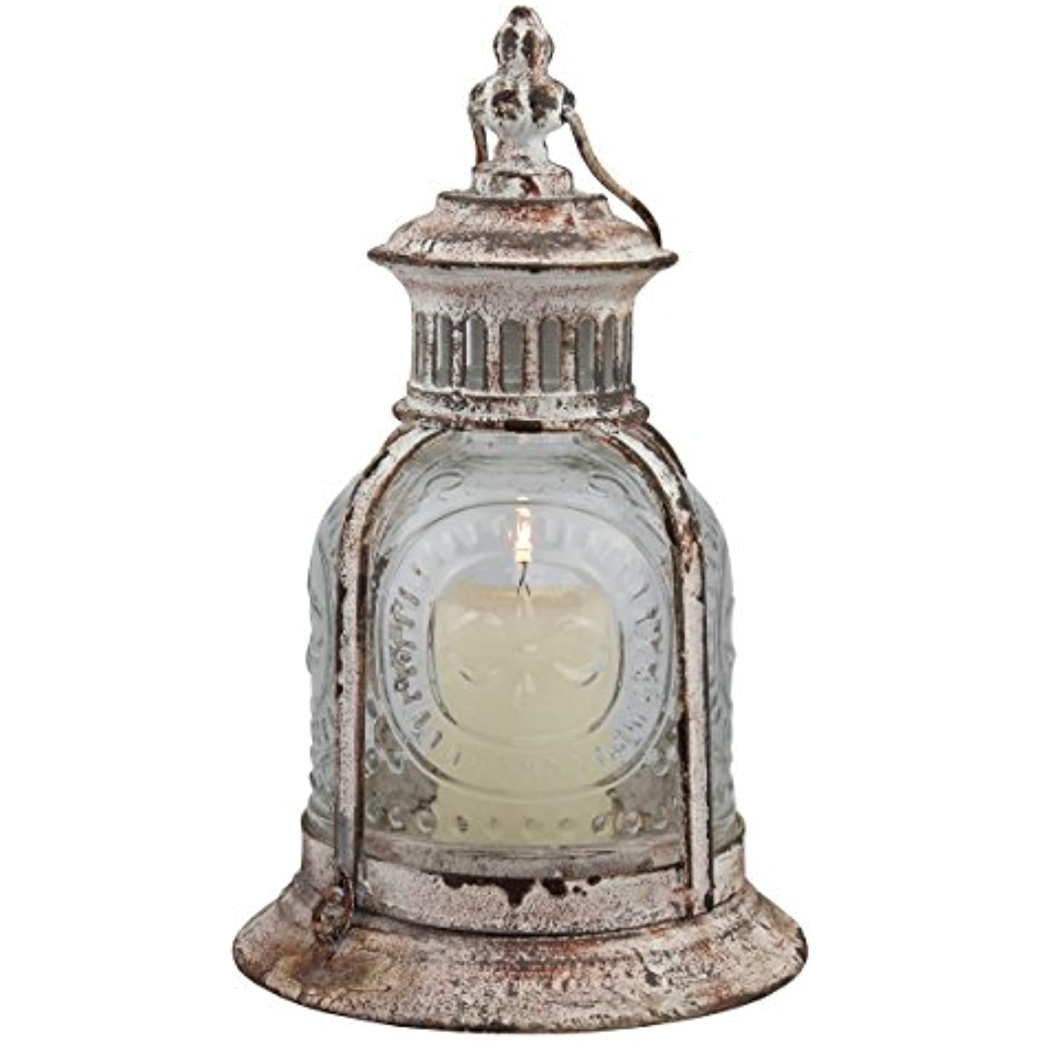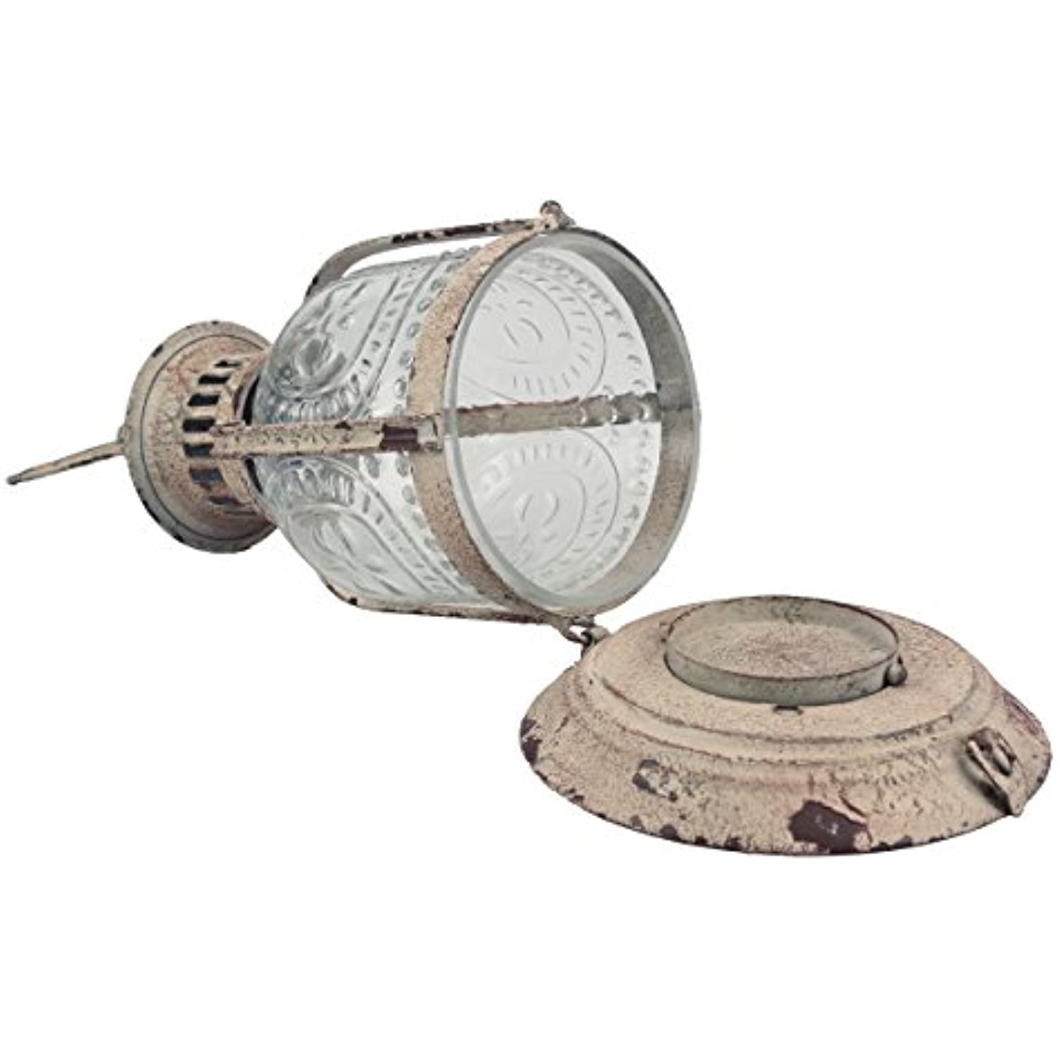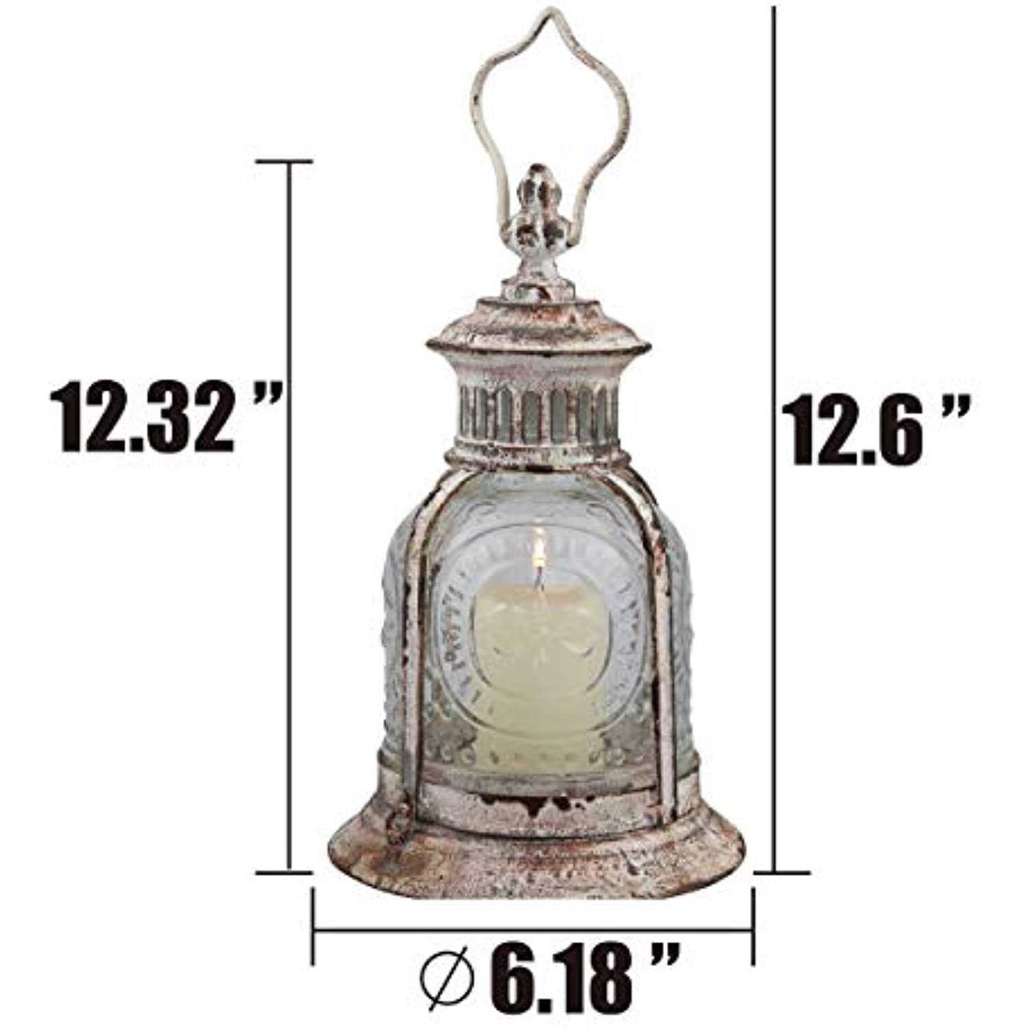 - Metal cafe lantern is durably made with worn white painted metal with rust highlights & round pressed glass cover and is safe to use indoor or outdoor