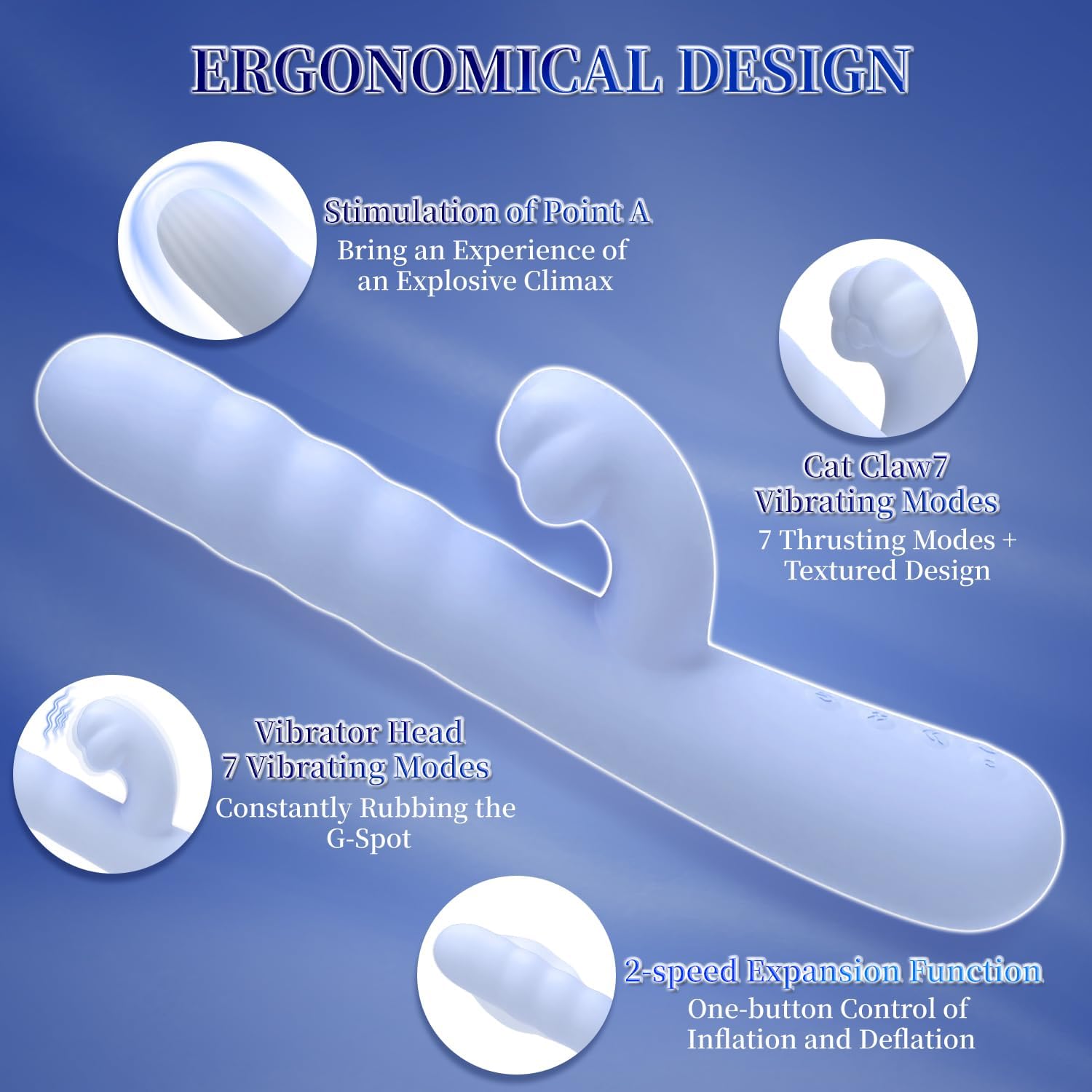 3-in-1 G-Spot Vibrator – Combining inflation, thrusting, and vibration, this versatile toy stimulates multiple erogenous zones simultaneously. With 2 inflation modes, 7 thrusting settings, and 7 vibration intensities, it precisely targets the G-spot, A-spot, vaginal opening, and clitoris for ultimate pleasure.