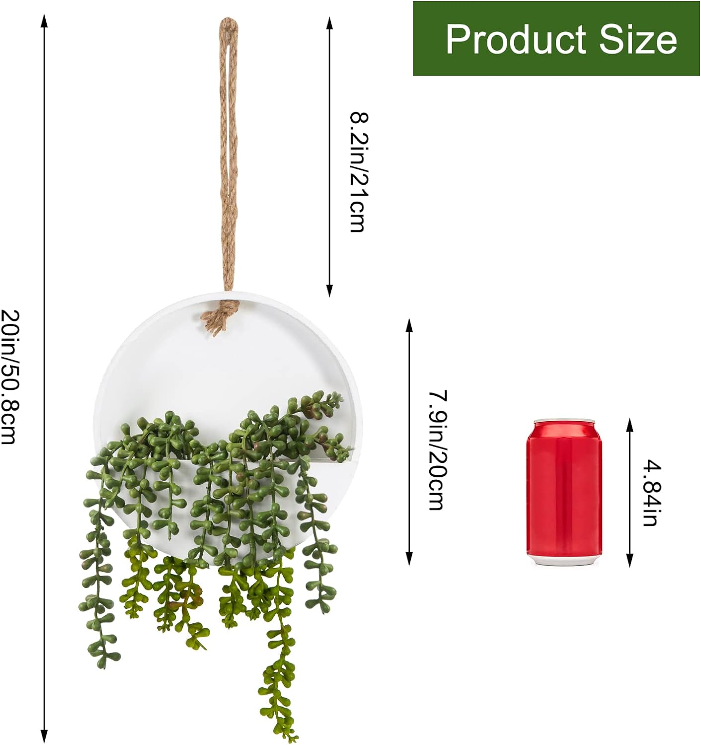 - 🌱 Size and Packaging: The total length of the artificial hanging plant is approximately 12.2 inches, plus an additional 8.3 inches of string for hanging it. Each package includes 2 pieces of fake succulent hanging plants. To keep the plants intact, each package is packed in a cardboard box.