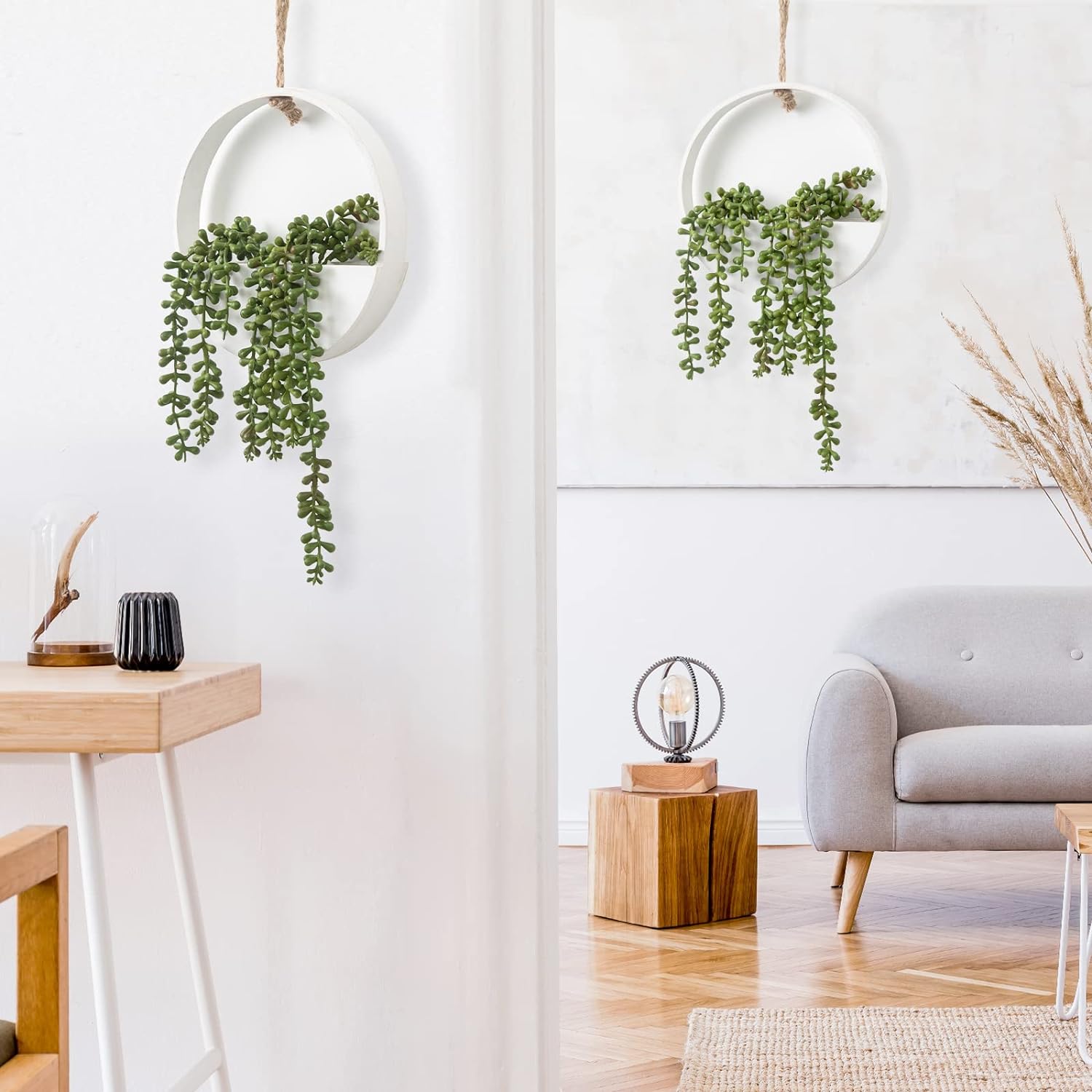 Artificial Succulents Hanging Plants 2pcs Fake String of Pearls in Pot with Lanyard for Indoor Outdoor Wall Boho Wall Decor