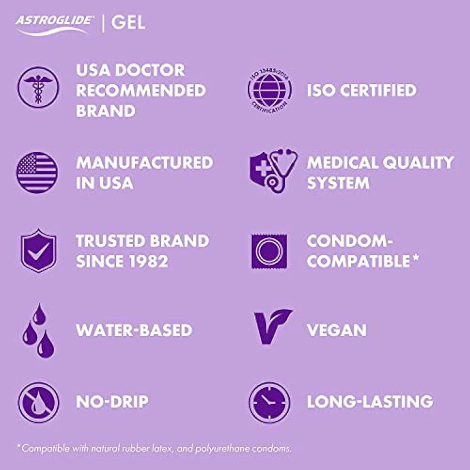 Astroglide Gel, Water-Based Lubricant Sex Gel for Couples, Men and Women (4 oz.) | Stay-Put Personal Lubricant | Long-Lasting Sex Lube | Condom Compatible | Made in The USA (Pack of 4)