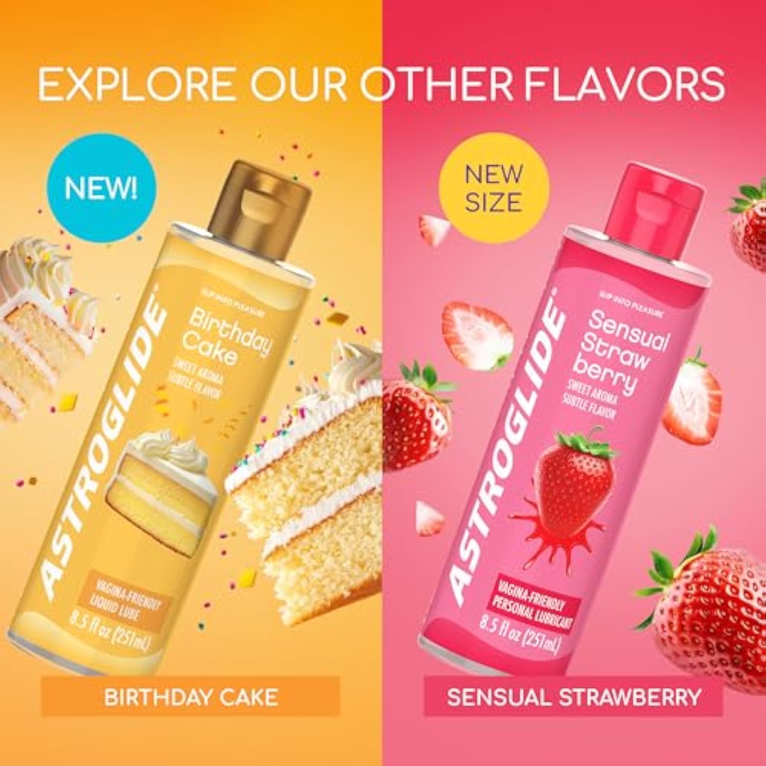 | NEW 8.5oz FLAVOR – Experience delicious flavor in our new, larger size—perfect for extended pleasure and more fun to share | | EXTREMELY LONG-LASTING – Enjoy hours of silky-smooth pleasure with our famous, long-lasting formula | | CONDOM COMPATIBLE – Safely heightens your experience and is compatible with natural rubber latex condoms | | VAGINAL SAFE HYPOALLERGENIC – Gentle, hypoallergenic formula is perfect for those with skin sensitivities and safe for intimate use | | TRY THEM ALL – Try all 3 new flavors for a playful new way to keep pleasure fresh | |