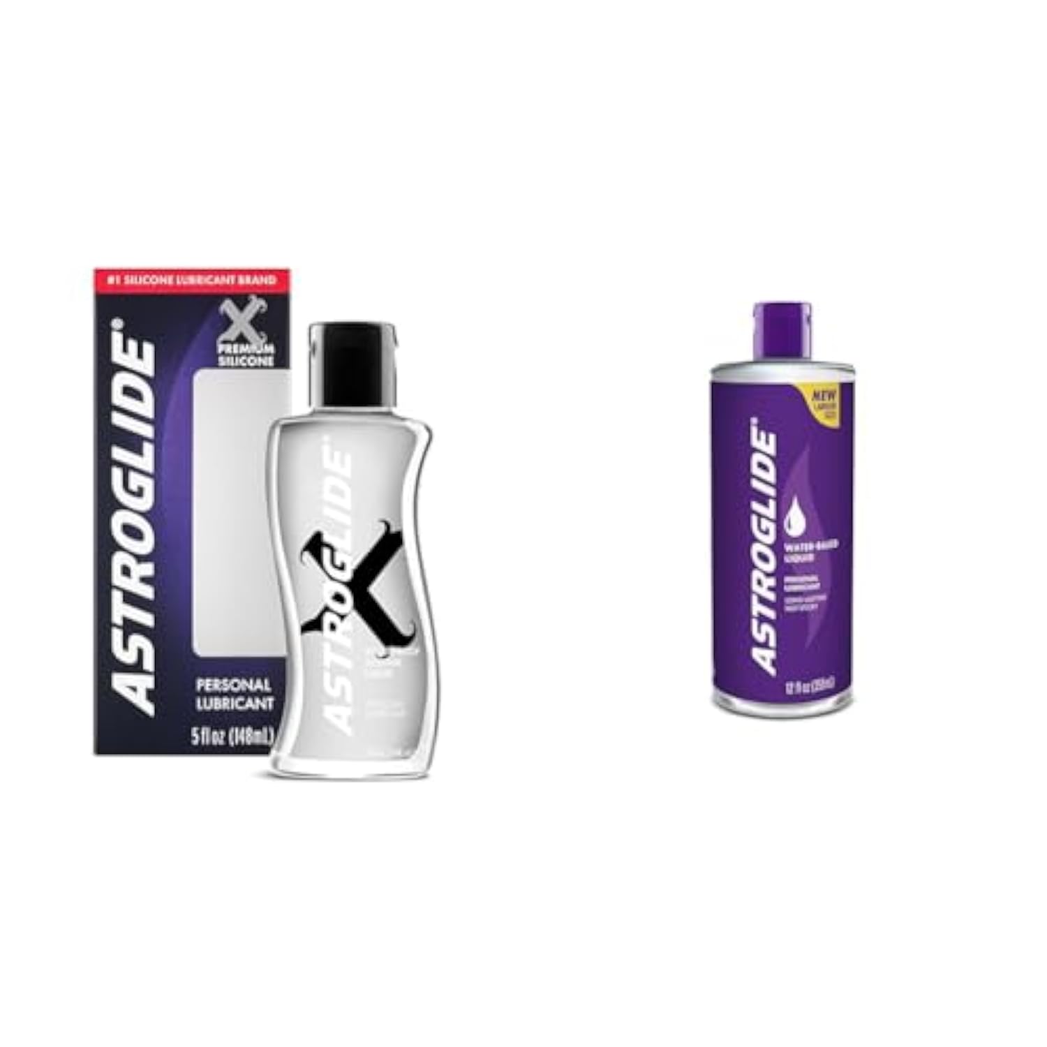 Astroglide X Premium Silicone Personal Lubricant (5oz), Extra Long-Lasting Silky Lube & Liquid Personal Lubricant (12oz), Water Based Lube, Dr. Recommended Brand, FDA Cleared