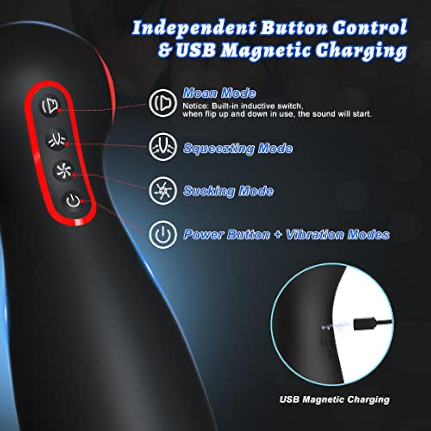 - ???4 In 1 Automatic Moaning Male Masterburbater? This Hands Free Male Stroker Sex Toy Integrates Squeeze, Sucking, Vibration, And Voice Which Can Work Together Or Independently. Each Function Is Individually Controlled By Buttons. The Blowjobsex Machine