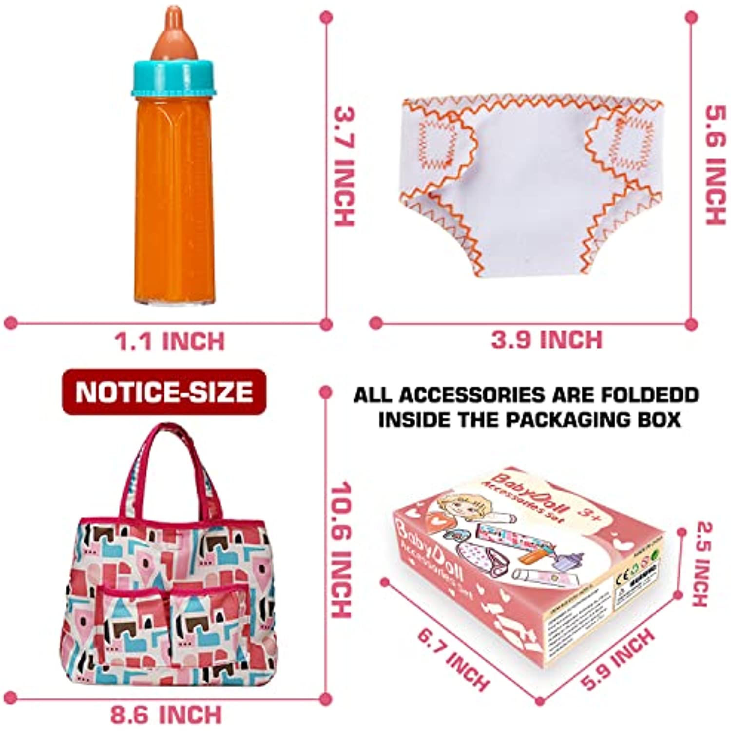 - All the doll accessories are highly durable and safe for little girls. The diaper bag is easy to clean & carry around. Children can put it in a doll stroller when they go to the park or the nursery.