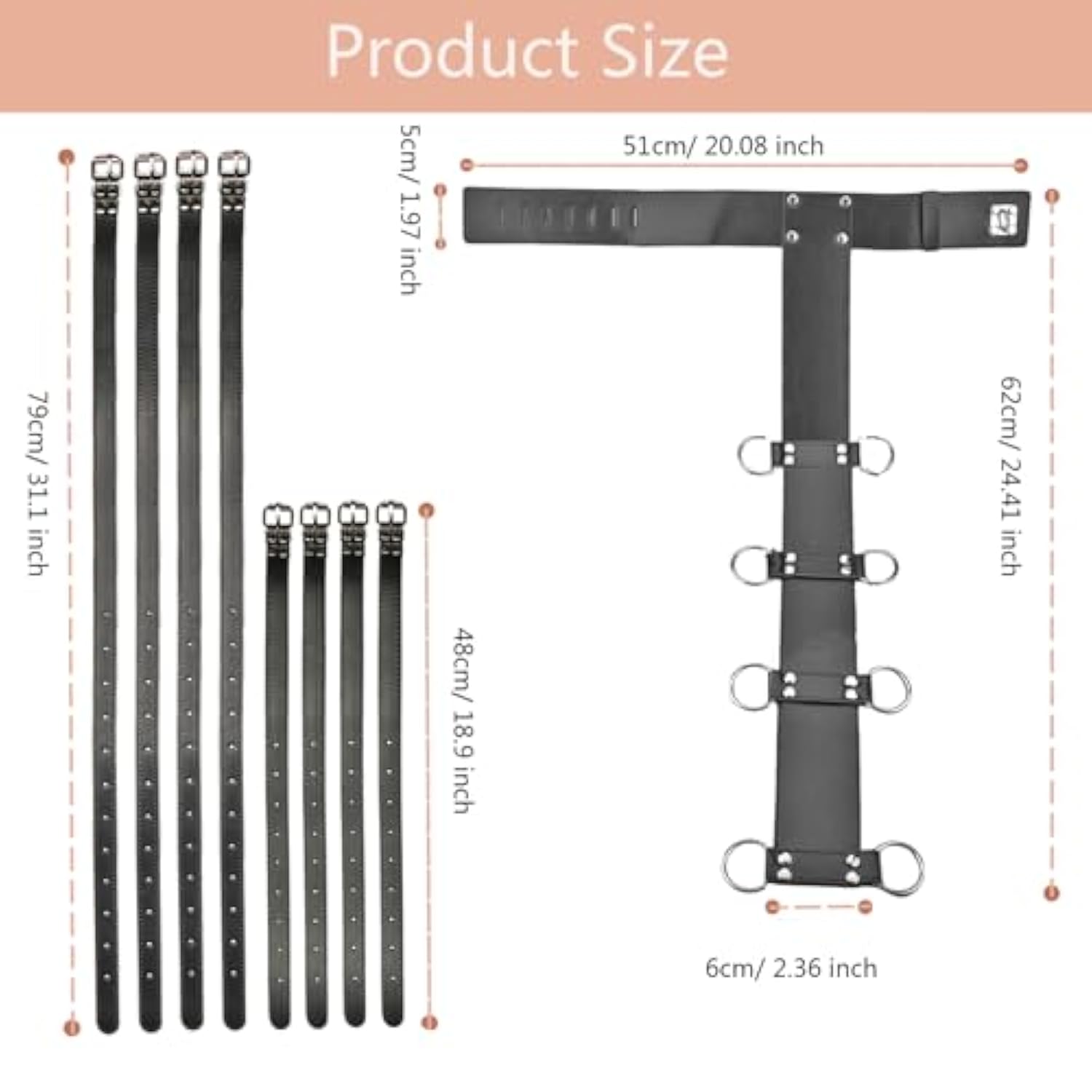 | Leather | | Perfect Bondage Fantasy: She Tied Her Hands And Tied Her Behind The Door, Use Your Imagination, She Doesn'T Know How You Punish Her. She Is Both Afraid And Expects The Greatest Sexual Desire In You. Enjoy The Most Exciting And Fun Sex Games | | Excellent Finish: Sex Toys For Couples Made Of Pu Leather, Comfortable And Durable. Lmmerse Yourself In The Punishment Game | | Adjustable Sex Toy Bondage: The Bdsm Bondage Set Designed For The General Body. Each Bdsm Bondage Accessories Such As Handcuffs And Straps Is Adjustable, Which Helps You To Adjust The Length And Tightness To Your Own Wrists. Suitable For Beginners And Advanced Users | | Perfectly Compatible With Other Sm Tools: When Engaging In Bondage Play With Your Partner, This Product Seamlessly Complements An Array Of Sm Tools, Including Whips, Paddles, Nipple Clamps, Mouth Plugs, Anal Plugs, Bondage Handcuffs, Dildos, And Clitoral Vibrators. Such Combinations Further Enhance The Sexual Stimulation Experienced During Bondage Sessions | | Ideal Sex Surprise: Compact And Easy To Use, This Sm Product Effortlessly Transforms Any Space, Be It A Bed Or Elsewhere, Into A Fulfilling Bondage Playground. It Serves As An Exceptional Surprise For Your Partner, Enabling Lovers To Indulge In Their Sweetest Desires With The Help Of This Versatile Tool | |
