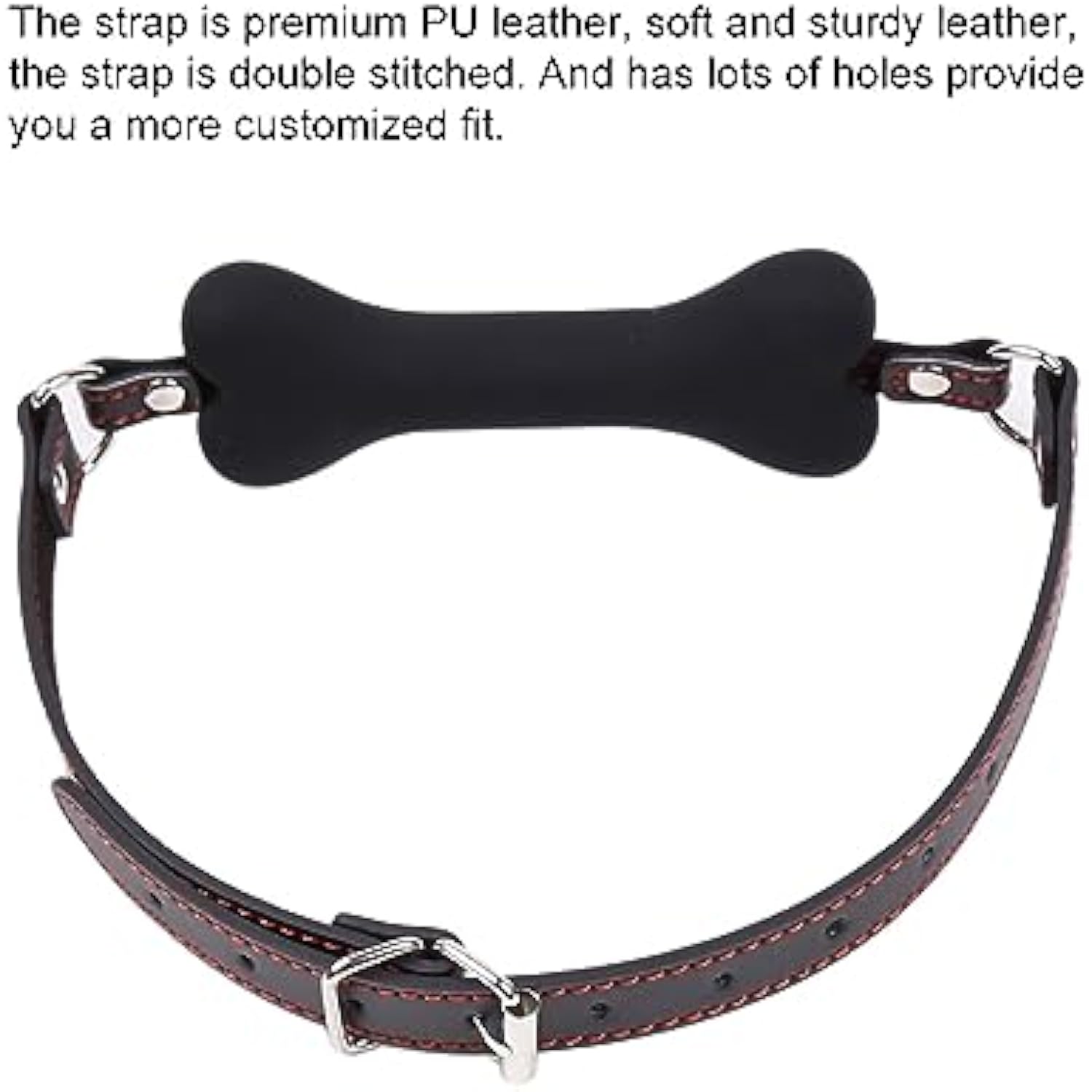Ball Gag Bondage Silicone Leather Dog Bones Gag Mouth Pet Bone Bite Mouth Gag Bdsm Fetish Slave Restraints Sex Toys (Black)