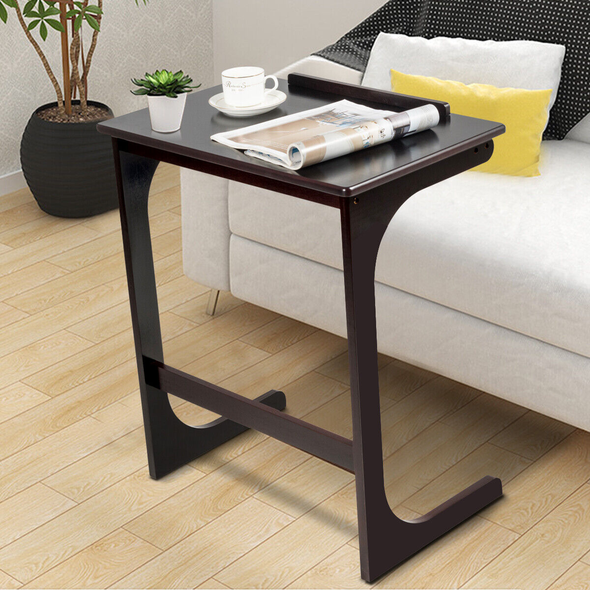 Bamboo Adjustable TV Tray C-Shape Sofa End Table Laptop Desk w/Tilting Top Brown
