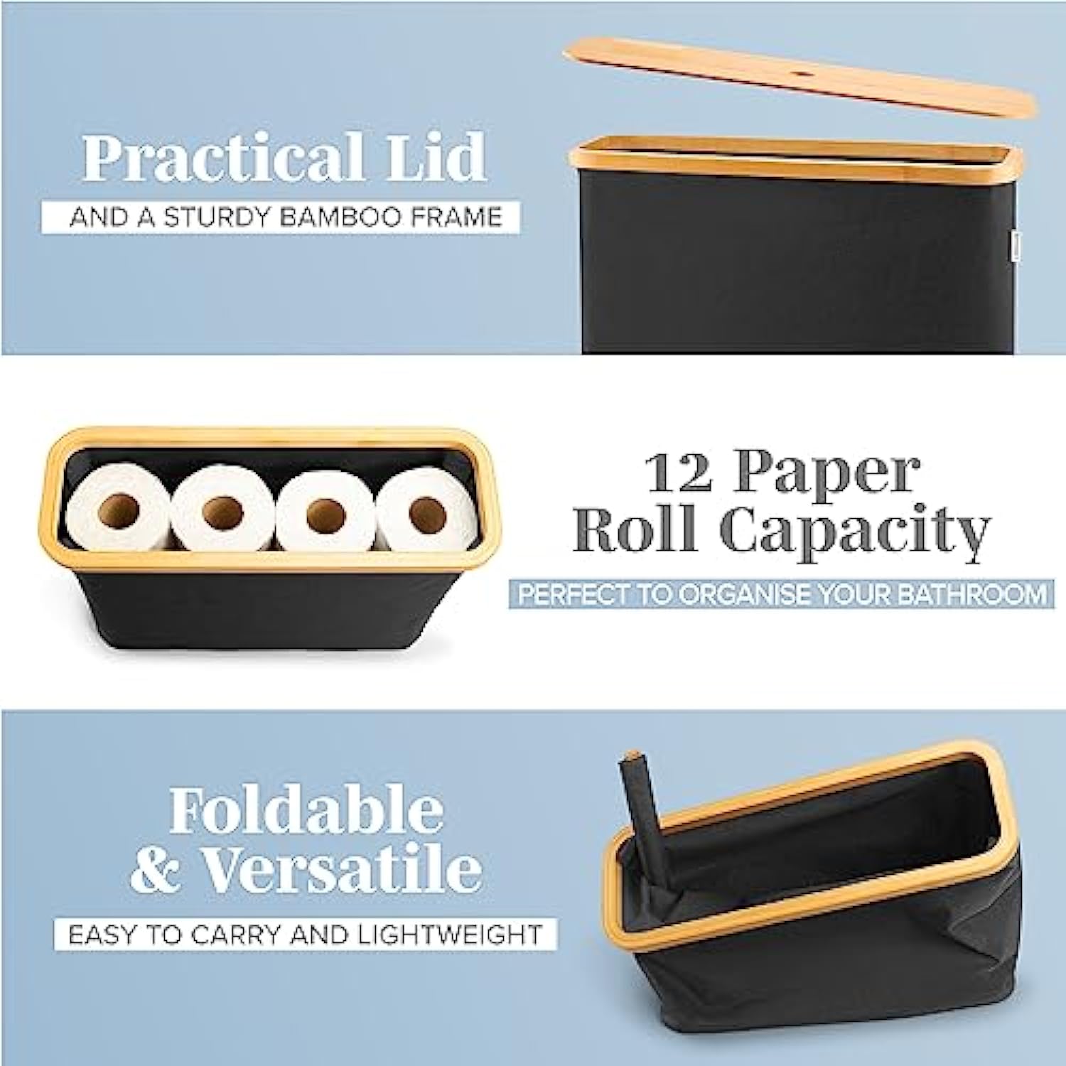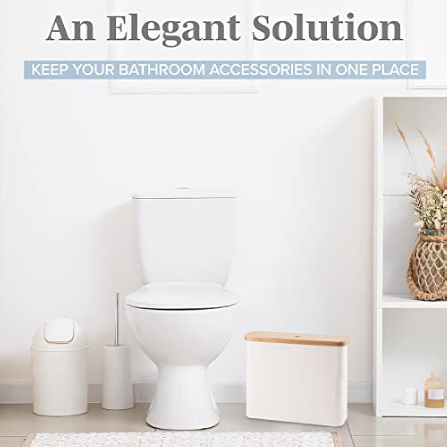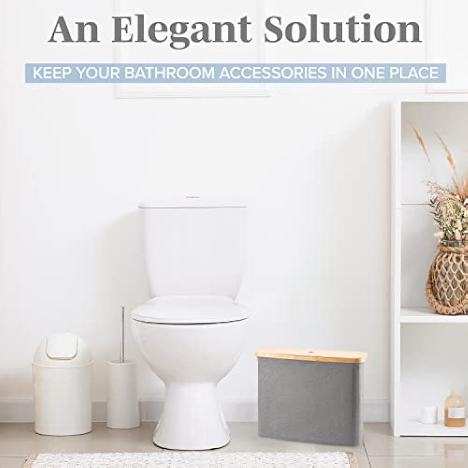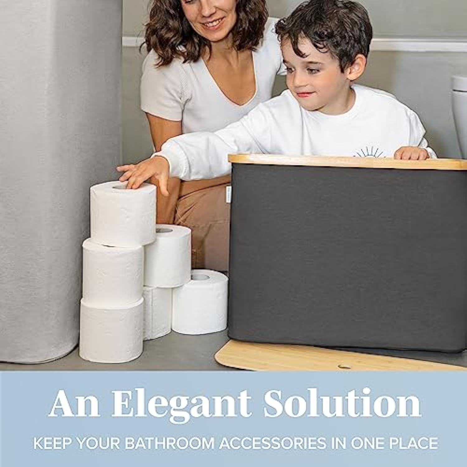 - Bamboo Materials: Our Toilet Paper Basket is made with high-quality breathable materials that keep homes smelling good. The wooden parts of the bathroom organizer is made with bamboo. This storage basket offers an elegant look for your bathroom or utility closet. Available in 4 different colors!