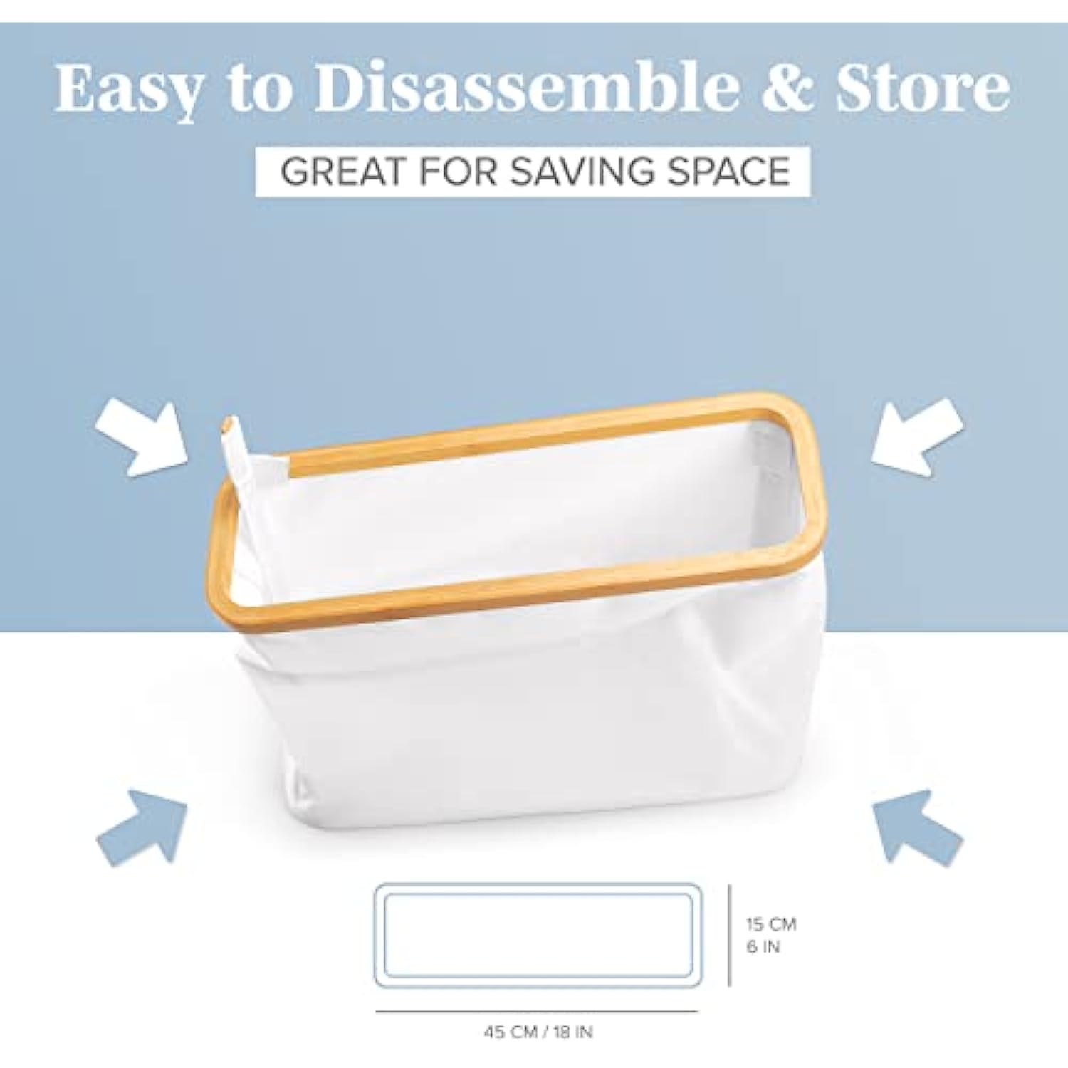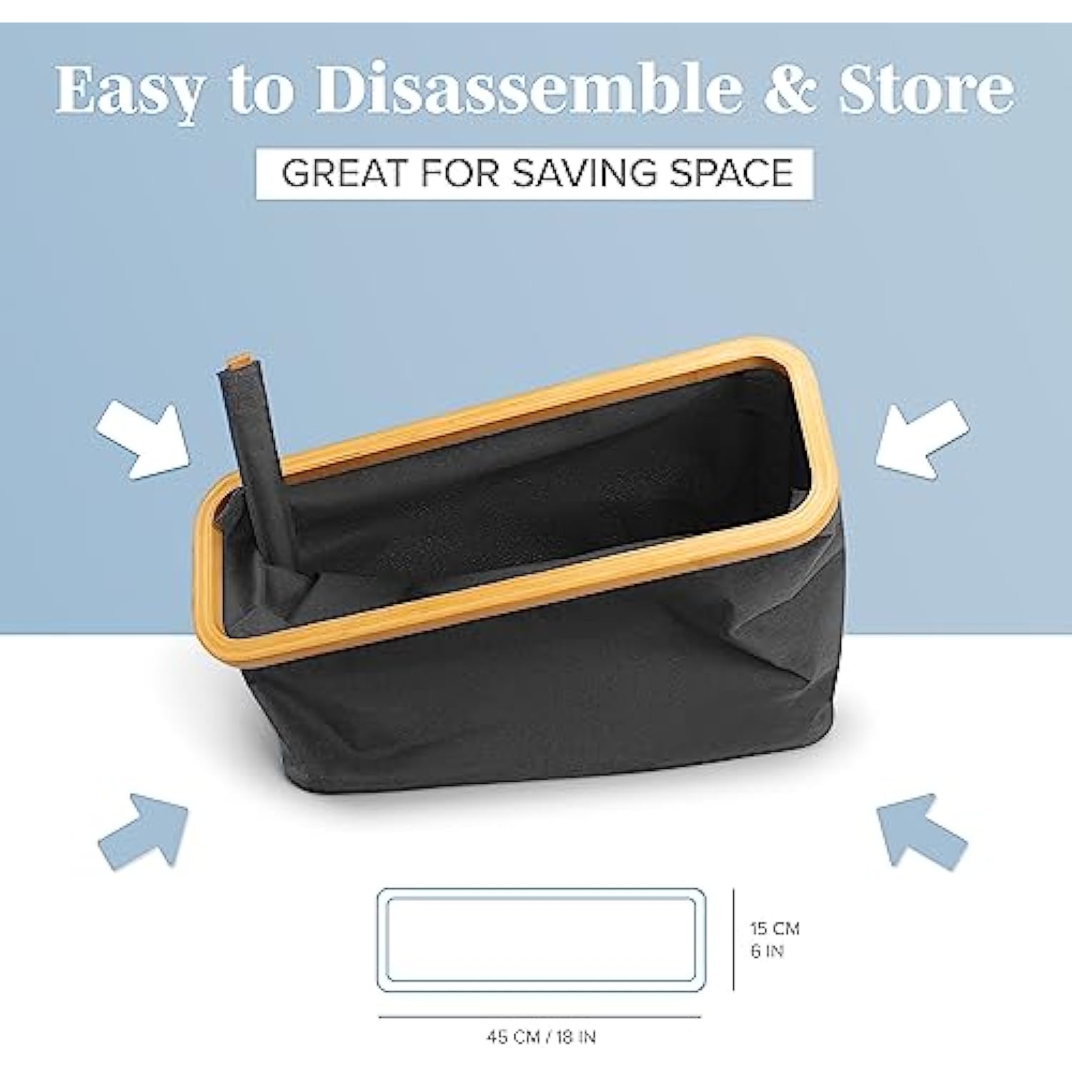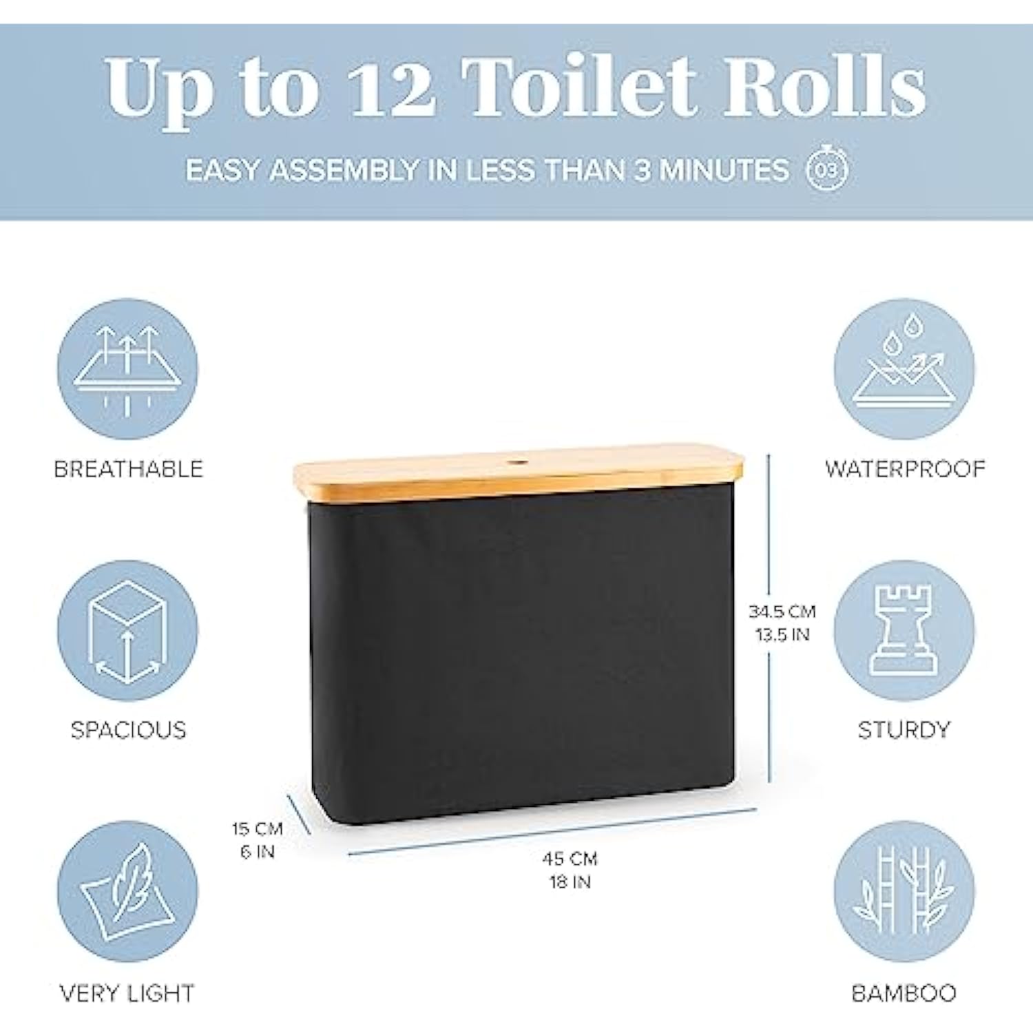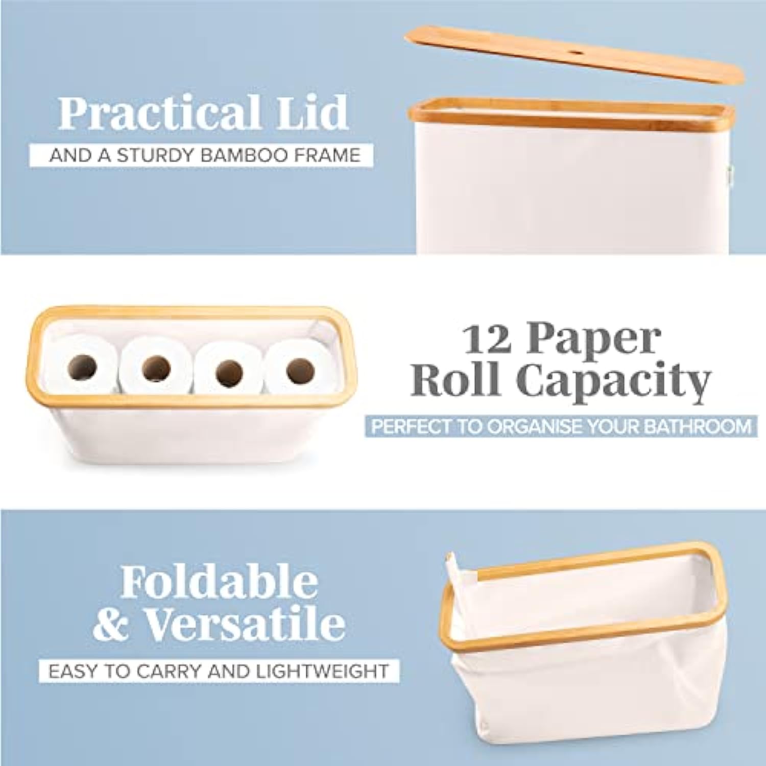 - Bamboo Materials: Our Toilet Paper Basket is made with high-quality breathable materials that keep homes smelling good. The wooden parts of the bathroom organizer is made with bamboo. This storage basket offers an elegant look for your bathroom or utility closet. Available in 4 different colors!