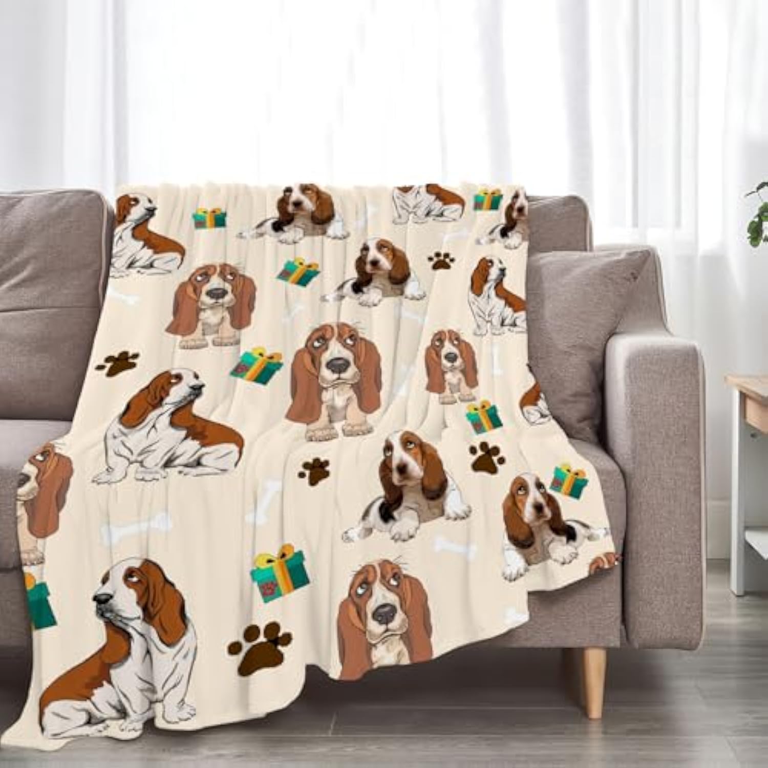 Basset Hound Blanket Cute Basset Hound Dog Throw Blankets Soft Warm Fuzzy Cozy Plush Gifts For Girls Women Lightweight Fleece Flannel Stuff Decor Gift For Kids Adults 50"X40"