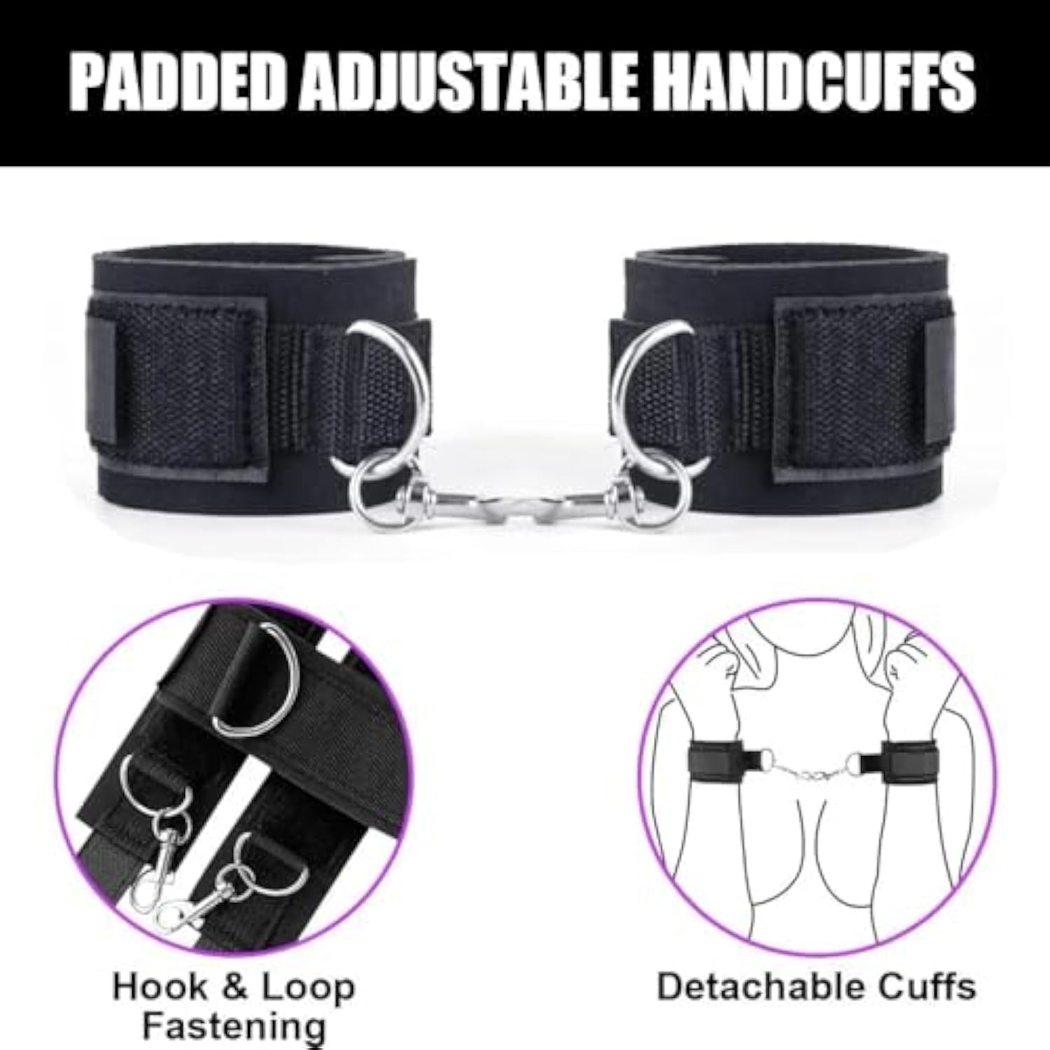 | Bdsm Sex Restraints For Women: Handcuffs And Thigh Cuffs At The Same Time Lock Use, Fully Open Her Thighs So You Can Tease, Enjoy Her Body, Let Your Lover Feel Your Superior Sex Skills. The Bondage Strap Is Made By Comfortable Nylon And Cotton Pad, Support Long Term Use. | | Develop More Sexual Positions: This Bdsm Set Holds Your Partner'S Arms And Thighs Firmly Together, Supporting Missionaries And Doggy Style, And You Can Explore More Sexual Play And Positions Together By Manipulating Her Body To Switch Into Any Position That Is Easy To Access. | | Adjustable Handcuffs Leg Cuffs: Flexible And Adjustable Wrist Cuffs And Hook And Loop Fasteners, Fits For Most Body Shapes, Quick-Release D-Clamps Are Stylish And Convenient, And You Can Combine Them Into Simple Handcuffs And Ankle Cuffs For Individual Use, Unlocking More Fun And Easy Play. | | Perfect Prop For Sm Roleplay: The Bondage Handcuffs Set Wraps Around The Thighs, Wrists And Ankles, Allowing Your Lover To Get Down On Her Knees And Join You In Bondage Sex Games, Sex Slave Conditioning Games, And Arousing Her Kinky Side. | | Easy For Beginner To Start: The Adjustable Velcro And Easy-To-Operate Locking Clasp Design Allows Even Bdsm Beginners To Quickly Learn How To Tease And Please Their Partner And Satisfy Their Lover'S Sexual Needs And Kinks. | |