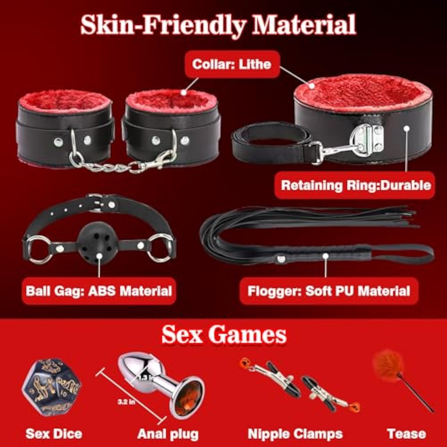 Bdsm Bondage Restraints For Adult Toys, 12 Pcs Bondage Gear And Accessories Sex Toys For Women And Couples