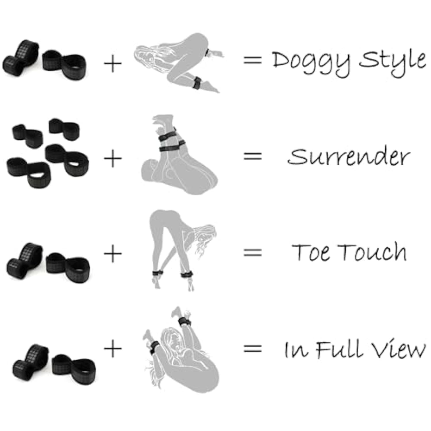 | Bdsm Starter Kit: 4 Adjustable Restraints (Wrist/Ankle/Calf Cuffs) With Velcro Straps; Designed For Beginners To Experts In Couples Role Play Sm Games | | Vegan Leather Construction: Premium Black Pu Material With Checkered Texture; Hypoallergenic Luxurious Tactile Feel For Sensual Exploration | | Instant Control System: Ultra-Strong Velcro Enables Quick Setup (≪3 Seconds); No Tools Needed For Adjustable Restraint Positions | | Skin-Safe Comfort: Soft Short-Pile Fabric Lining With Reinforced Edges; Odor-Free Non-Irritating For Extended Play Sessions | | Bedroom Essentials Upgrade: Compatible With Most Bdsm Furniture; Intuitive Design Eliminates Learning Curve | |