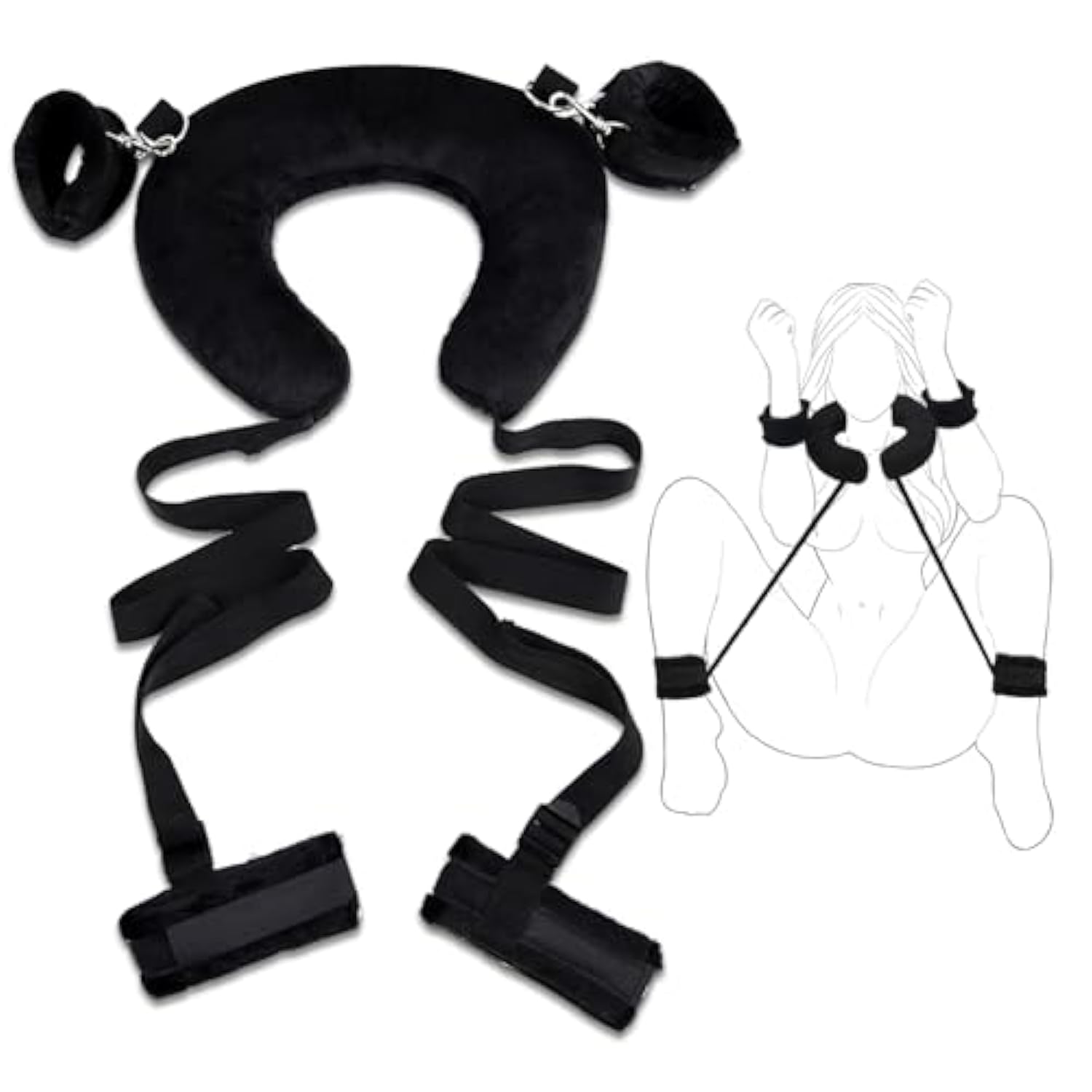 Bdsm Bondage Restraints Sex Toys, Bed Restraints Kit With Soft U-Shaped Pillow & Handcuffs Neck To Ankle, Sex Straps Adjustable Cuffs Bdsm Toys For Couples Sex Bondage Restraints Set