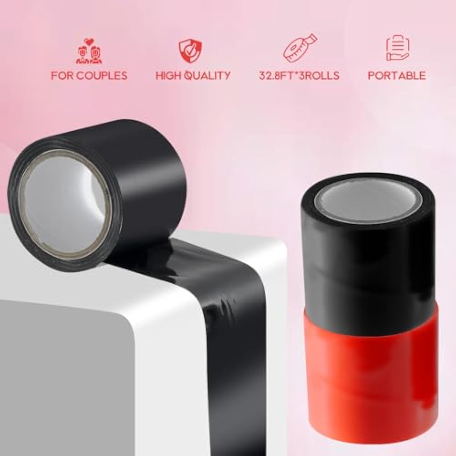 Bdsm Bondage Restraints Tape Set Adult Toy Sexual Restraint Tape Reusable Binding Pvc Sex Things Suitable For Fetish Sm Sex Game Couples And Adults (32.8Ft*3 Rolls)