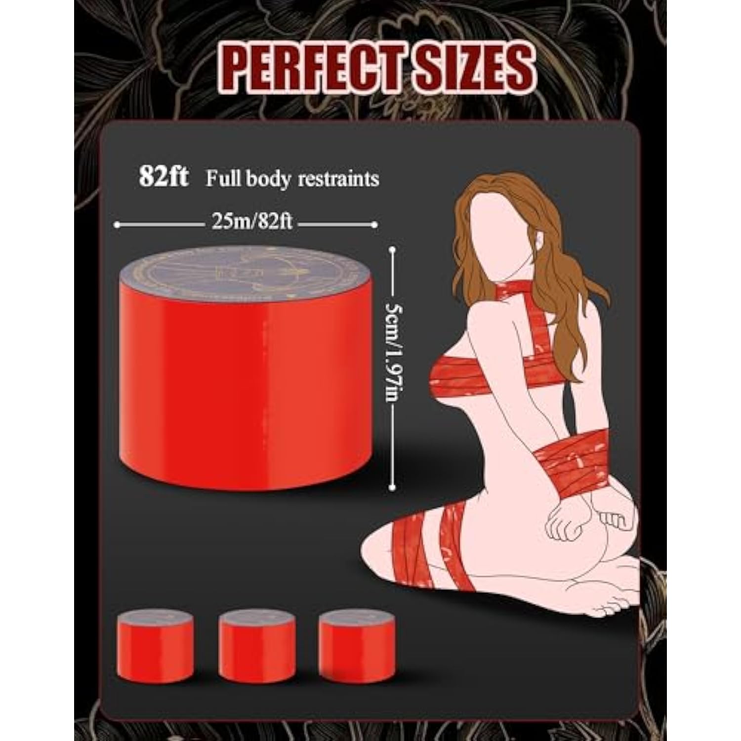 Bdsm Bondage Restraints Tape Set – Adult Toy Sexual Restraint Tape Reusable Pull-Up Binding Pvc Static Electrostatic Tape For Couples 82Ft ?3 Rolls?Red