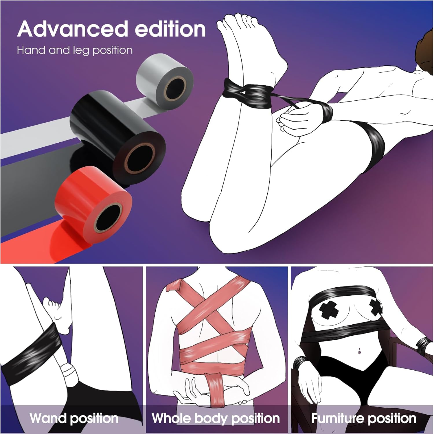 Versatile for Multiple Uses – Bondage tape is an essential accessory for creative restraints, cosplay, and roleplay. It can be used for wrist or ankle bindings, body wraps, or even to create custom fetishwear.