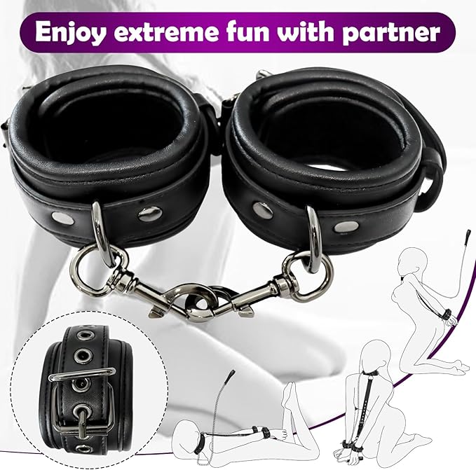 Fully Adjustable & Detachable – The cuffs and straps are fully adjustable to fit various body types, allowing for customized tightness and comfort. The detachable handcuffs can be used separately, providing multiple play options.
