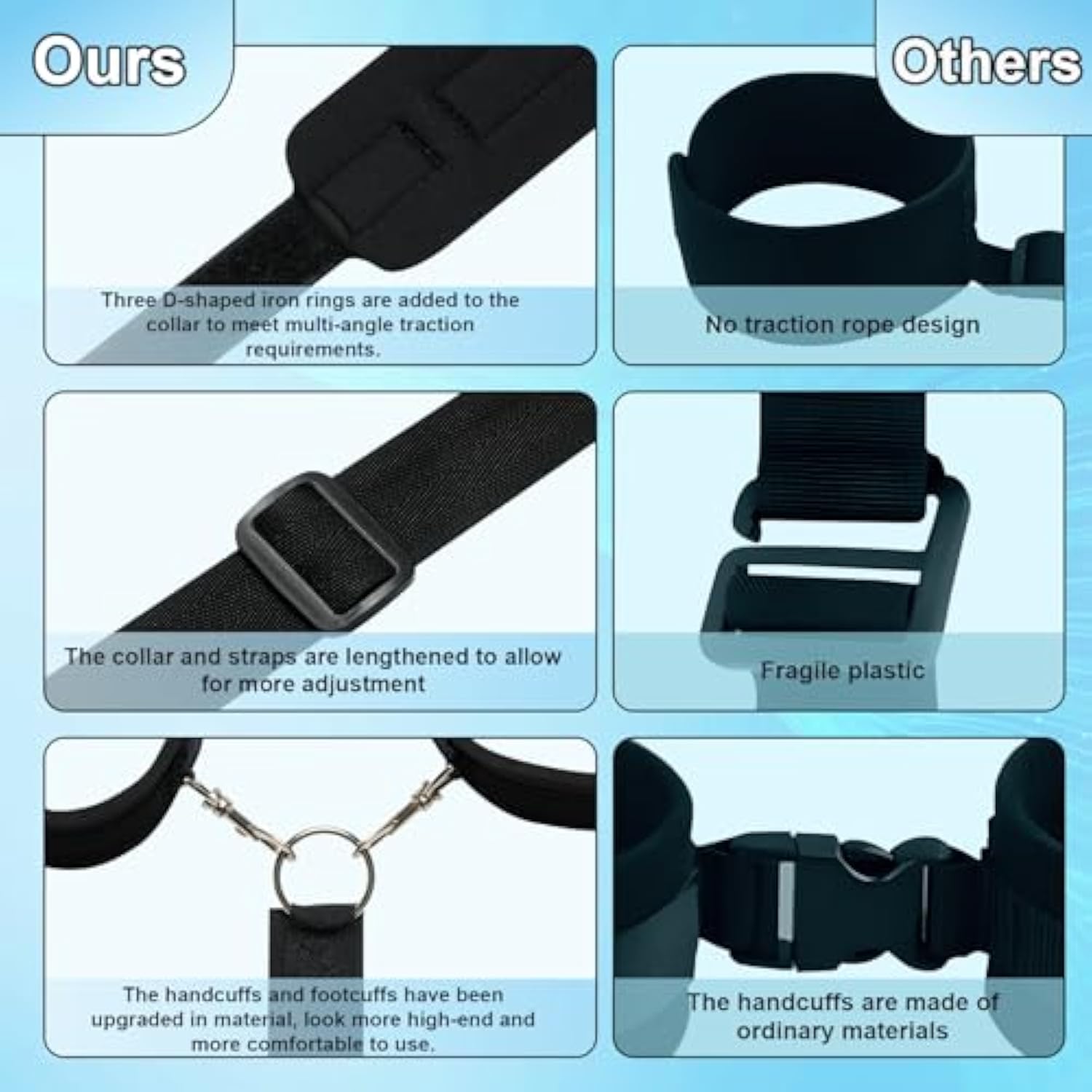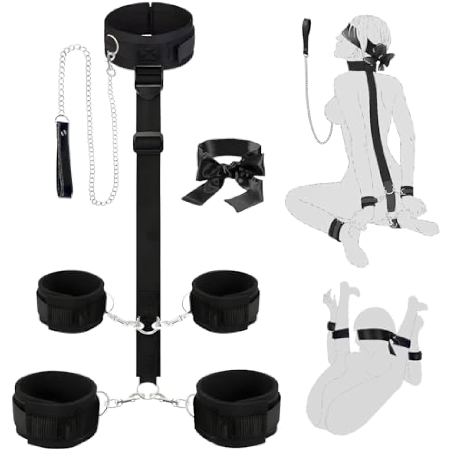| Bdsm Neck To Wrist Restraints Set With Traction Chain: Multiple Posture Experience ,Can Satisfy Neck To Wrist Bondage, Wrist And Ankle Bondage, Traction Chain Bondage, Etc. | | Our Advantage -- 1,Three D-Shaped Iron Rings Are Added To The Collar To Meet Multi-Angle Traction Requirements; 2?Removable Hand And Foot Cuffs, You Can Disassemble Them And Freely Combine Them To Increase Playability; 3?Ribbons Can Tie Your Wrists And Blindfold; 4?Fully Adjustable, Neck Collar/Back Straps/Handcuffs, This Upgraded Version Has Been Lengthened, With More Adjustable Space Than The Same Product; 5?The Handcuffs And Footcuffs Have Been Upgraded In Material, Look More High-End And More Comfortable To Use. | | Increase Couple'S Interest -- Create Your Own Secret Base Anytime, Anywhere:Hotel,Bedroom,Motor Home,Party, Small Size And Easy To Carry | | Privacy Packaging, Ideal Gift, Couple Enjoying Together | |