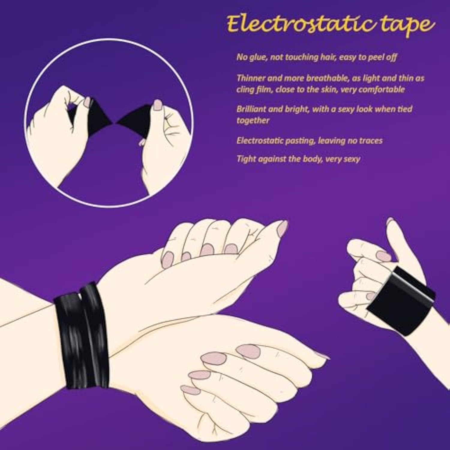 Bdsm Bondage Tape Set For Adults - 3 Roll Static Cling Restraint Tape For Couples, No Glue No Residue, Reusable Sex Toy For Wrists Ankles Bed (Black, Red, Pink)