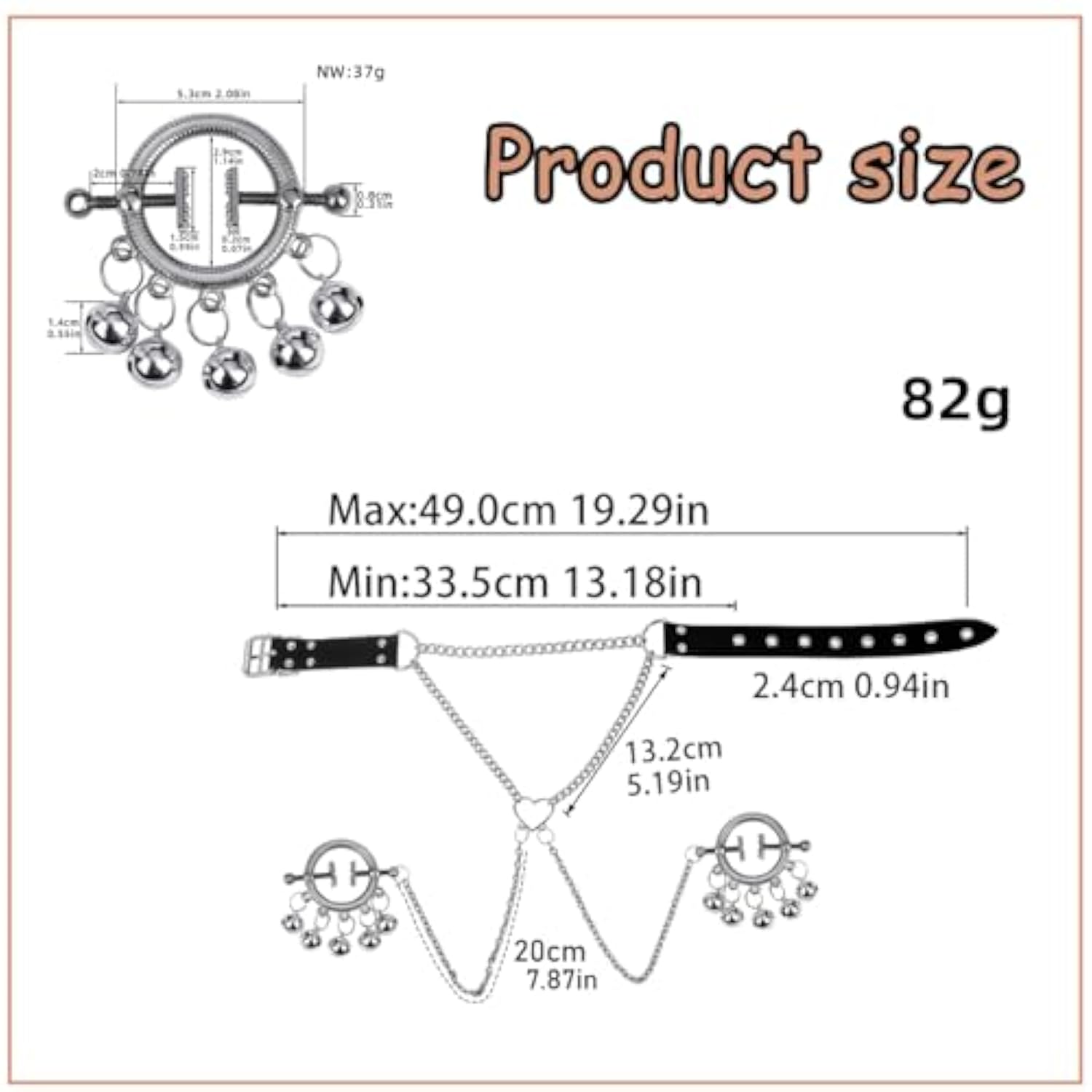 | Multi-Material Integration: Stainless Steel Is Used To Create The Ring Breast Clip Body, Which Is Durable And Cold In Texture, With Soft Leather Belt And Metal Chain. The Leather Belt Is Skin-Friendly And Comfortable, The Chain Adds A Flexible And Restrained Atmosphere, And A Variety Of Materials Are Combined To Create A Unique Sm Experience From The Touch And Vision | | Screw Adjustment System: The Nipple Clamp Is Equipped With A Screw, Which Can Accurately Adjust The Force. By Rotating The Screw, It Can Change The Distance Between The Non-Piercing Nail Plate At The End Of The Screw And The Breast Clamp Ring, Providing Users With Different Degrees Of Stimulation From Gentle To Strong, To Meet The Individual Needs | | Strong Scene Adaptation: Whether It Is A Private Two-Person World, Used To Explore Passion, Or In A Specific Sm-Themed Party, Role-Playing Activities, The Nipple Clip Can Quickly Create An Atmosphere Full Of Desire And Control With Its Unique Design, Becoming A Powerful Prop For Scene Creation | | Neck Connection Design: A Leather Strap Is Connected To A Chain And Can Be Worn Around The Neck. This Sm Nipple Bondage Restraints Design Not Only Strengthens The Overall Sm Style From The Physical Bondage, But Also Deepens The Feeling Of Being Controlled And Restrained Psychologi