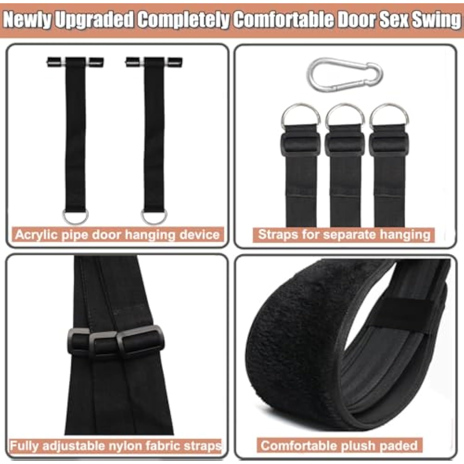 | Door Sex Swing: The Sex Swing A Newly Upgraded Safe And Comfortable Hanging Door Sex Device Which Includes Strong Acrylic Pipe Door Hanging Device, Adjustable Hands Support And Nylon Fabric Belts, Pu Leather Widened Plush Padded Seat Cushion And Leg Pads | | High-Quality Material Durable Construction: The Couple Sex Swing Is Made Of Pu Leather, Plush Padded, Durable Metal And Very Strong Nylon Fabric Belts For A Comfortable, Secure Experience | | Fully Adjustable Straps: The Couple Sex Swing Has A Design With Adaptable Length, Adjust Each Of The Straps For Free, Fixed To Enjoyable Position To Meet Your Needs. Adjusting The Height For Free, Make It Fit Various Positions, Set Up Your Play Space Quickly And Easily | | Easy-Install Door Sex Swing: Just Place Over The Door And Close Securely, No Permanent Fixtures Needed. Easily Hangs Over Any Sturdy Door For Convenient Set Up. The Hanging Door Swing Can Be Used Everywhere, Such As The Bathroom Door, Living Room Door, Kitchen Door Or Bedroom Door | | Experience A Gravity-Free Sex: Door Hanging Sex Swing Additional Support For You, Easily Enjoy The Sex Against Wall, Move Whatever You Like, Swing Back And Forth, Get In All Different Types Of Positions You Can’T Do In The Bed With Door Sex Swing | |