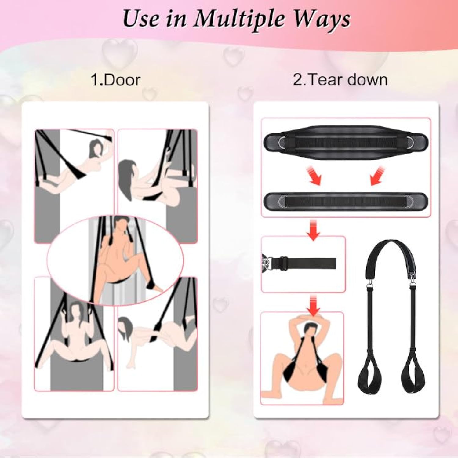 Bdsm Door Sex Swing Sex Toys Bondage Restraints Slave Leather Soft With Adjustable Straps,Indoor Ceiling Swing Sex Sling Adult Sexy Toys For Couples,Bdsm Kits,Room Game,Hold Up To 300Lbs